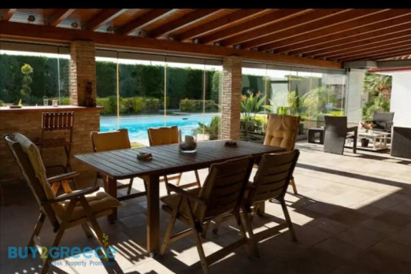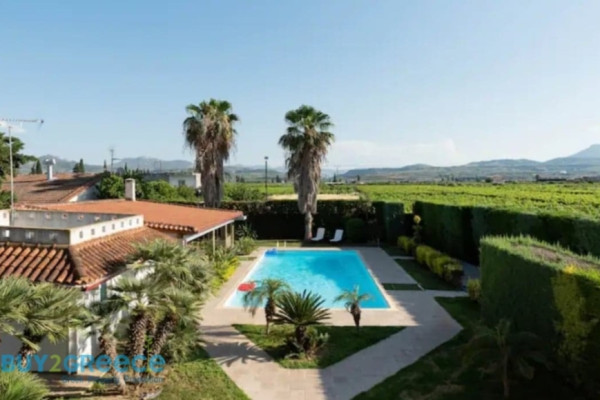 Verkauf Villa, Assos-Lechaio 421 quadratmeter , 2 ebenen , 6 schlafzimmer , 4 bäder , 3 parkplätze , 2005 baujahr , features: Abstellraum, Feuerstelle/Kamin (2), Diele/Mansarde, Jacuzzi, Satelliten, Internet, Electric Appliances, Interne Treppe, Doppelverglasung, Terrassen, BBQ/ Grill, Haustiere erlaubt, Wassererdbohrung , Investition, Möbiliert, aus Stein, Luxus, Schloss, Luftig, Hell, Klimaanlage, Sonnenenergiesysteme, Rasen, Automatisches Gießen, Bäume, Pool, Garten , Landhaus, Autonom - Benzin 2 kamine , blick :Meer , abstand von: Meer (m): 500, preis: 650.000€