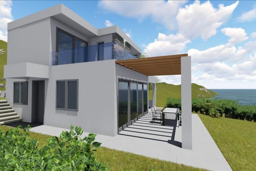 Villa ist doppelfassade Layout Bietet an auf das Meer, beinhaltet auch Solarwarmwasserbereiter, Kamin, Parkplat, Garten, Rasen, Heizung.