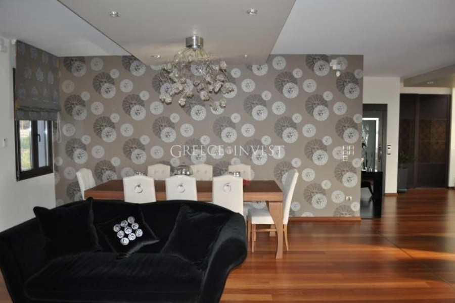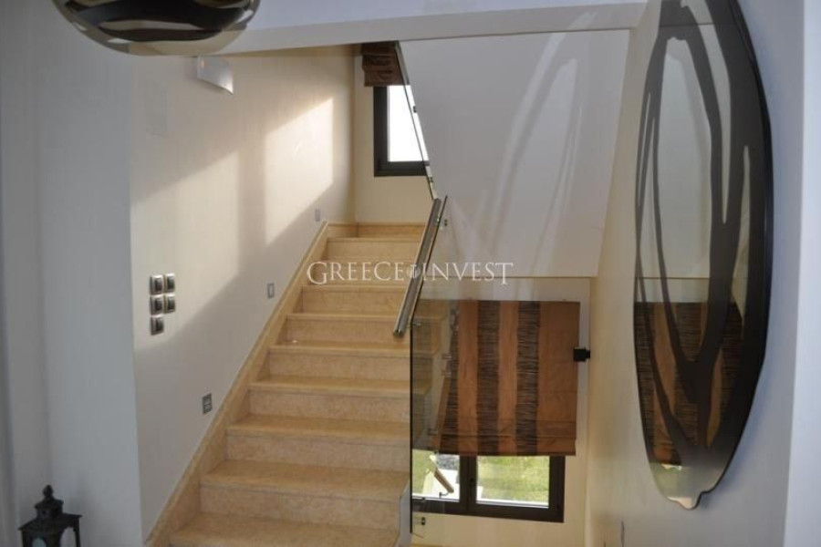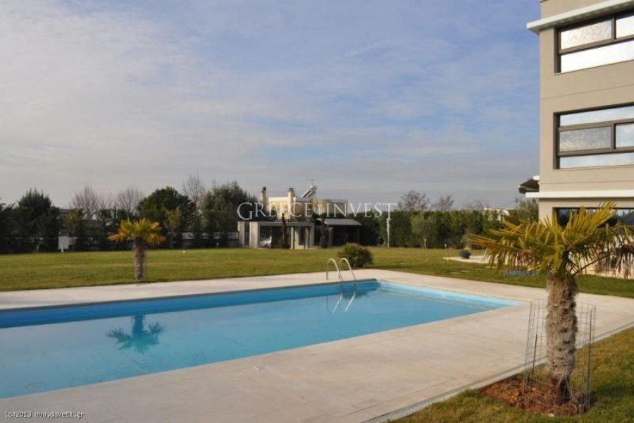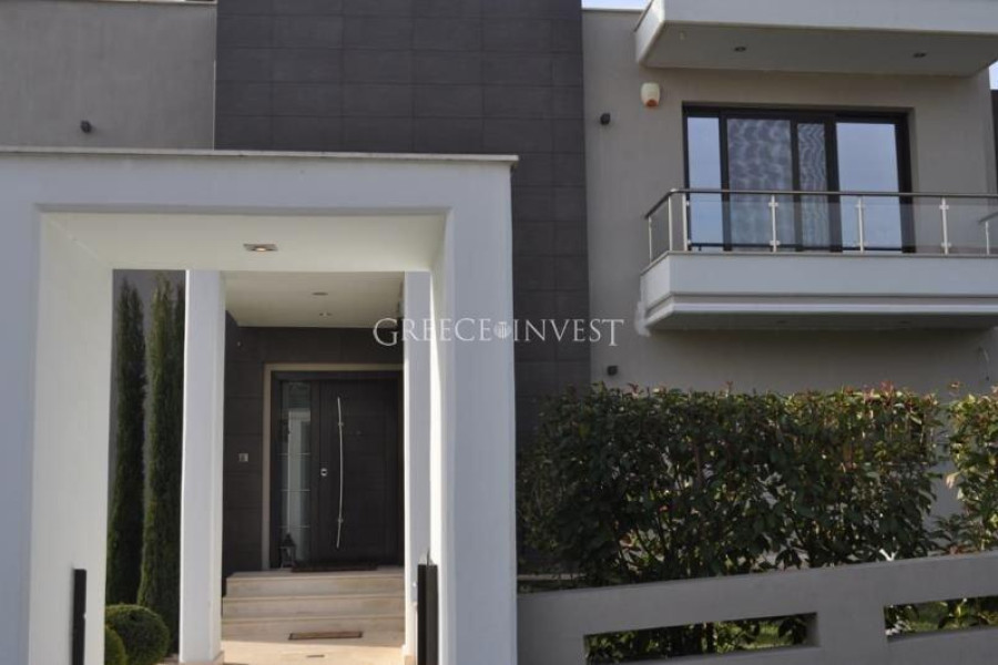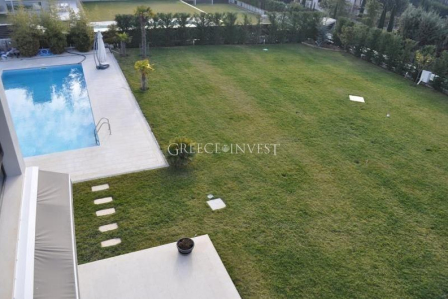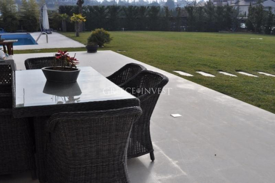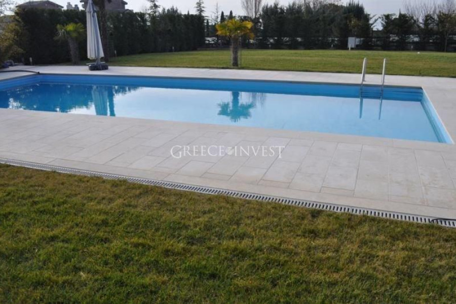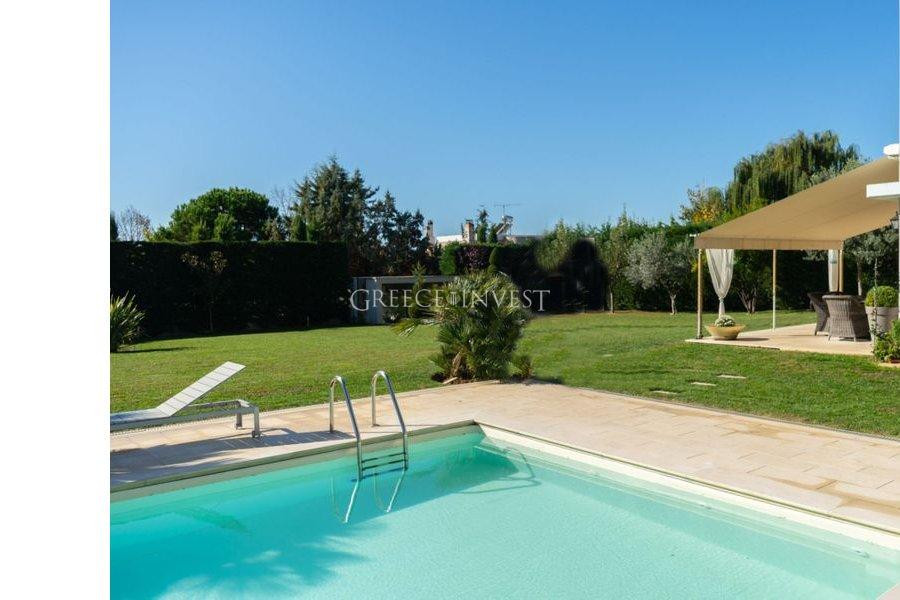 Villa in the elite district of Thessaloniki, Panorama. The villa has an area of 420 m², with its own plot of 2050 m², with its own pool of 62 m², with a closed parking lot of 30 m² and an open parking lot of 30 m². Modern, high-quality construction.