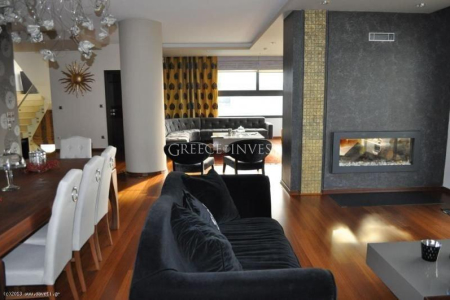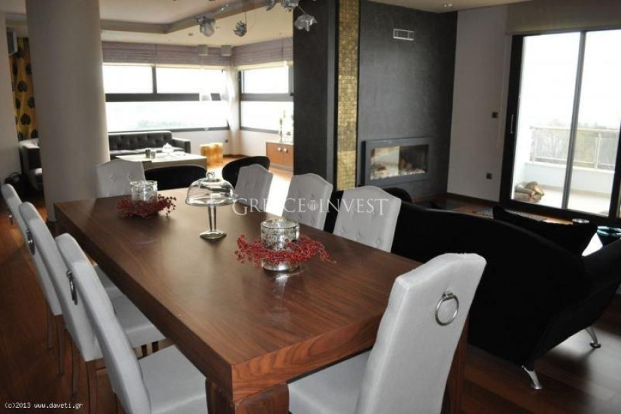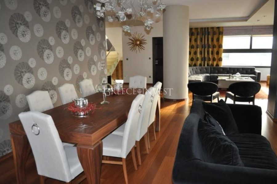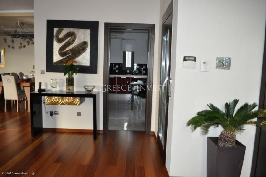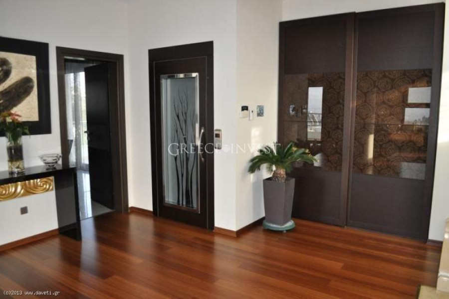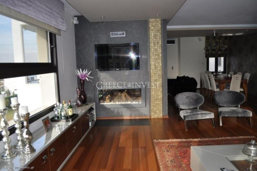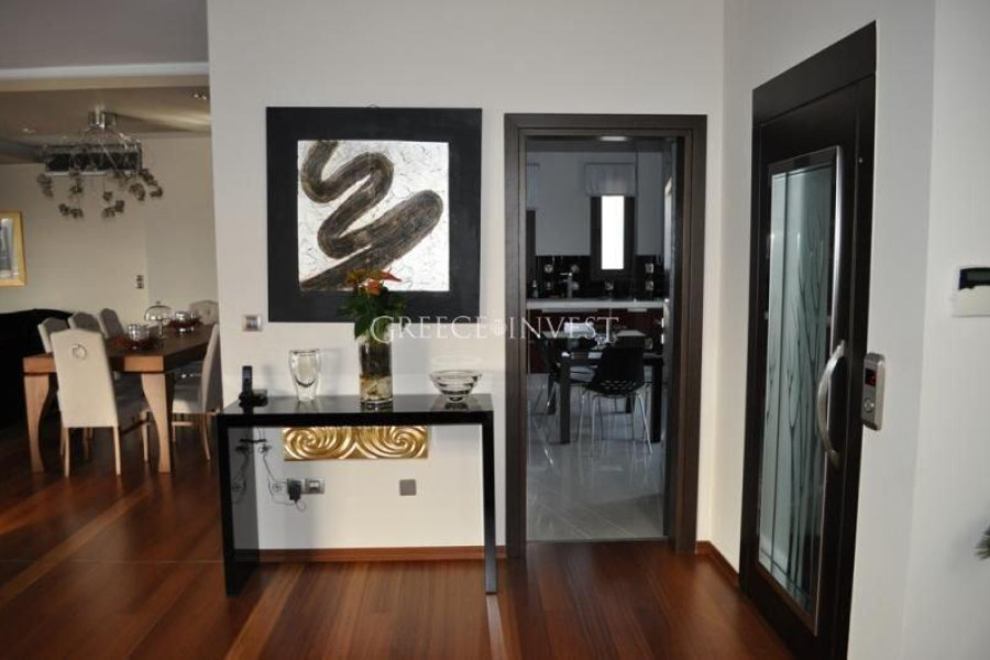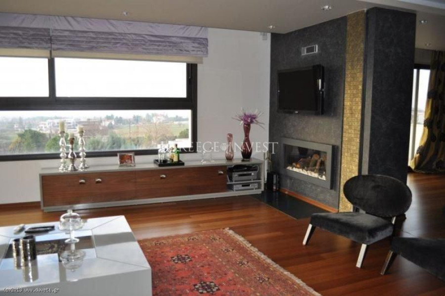 Villa in the elite district of Thessaloniki, Panorama. The villa has an area of 420 m², with its own plot of 2050 m², with its own pool of 62 m², with a closed parking lot of 30 m² and an open parking lot of 30 m². Modern, high-quality construction.