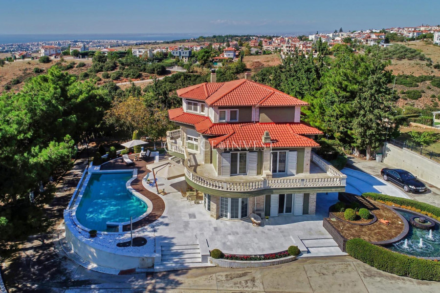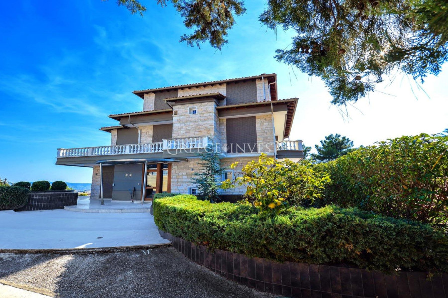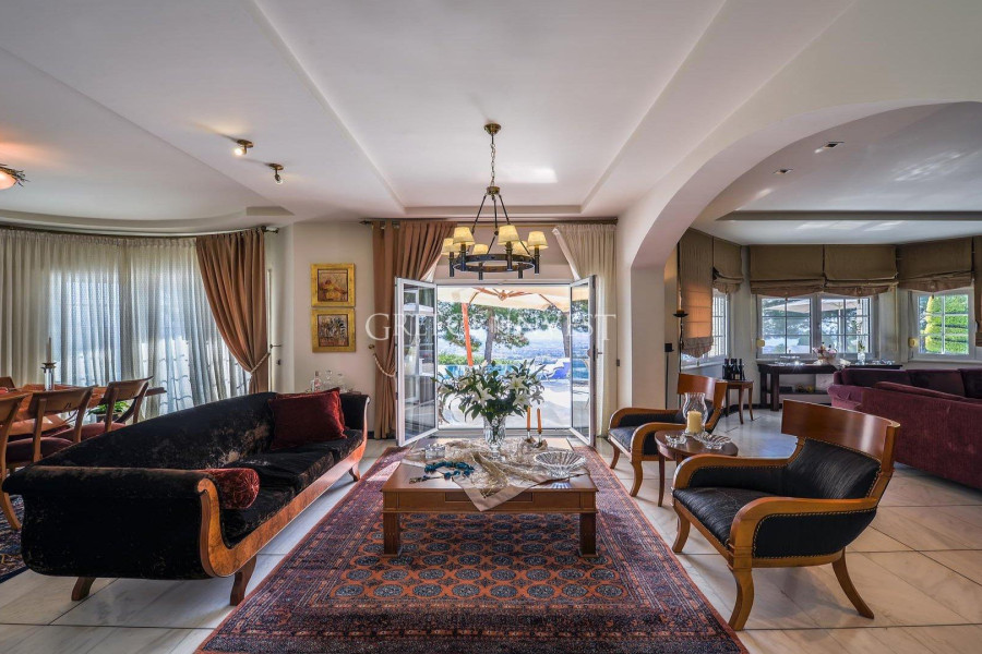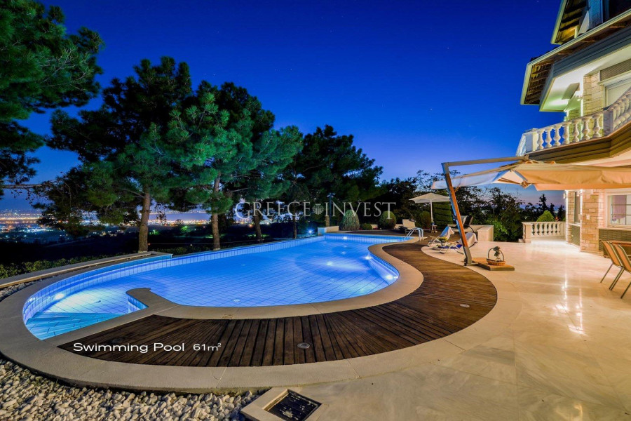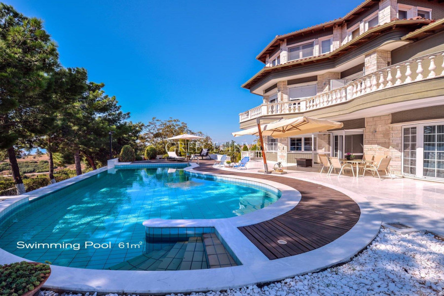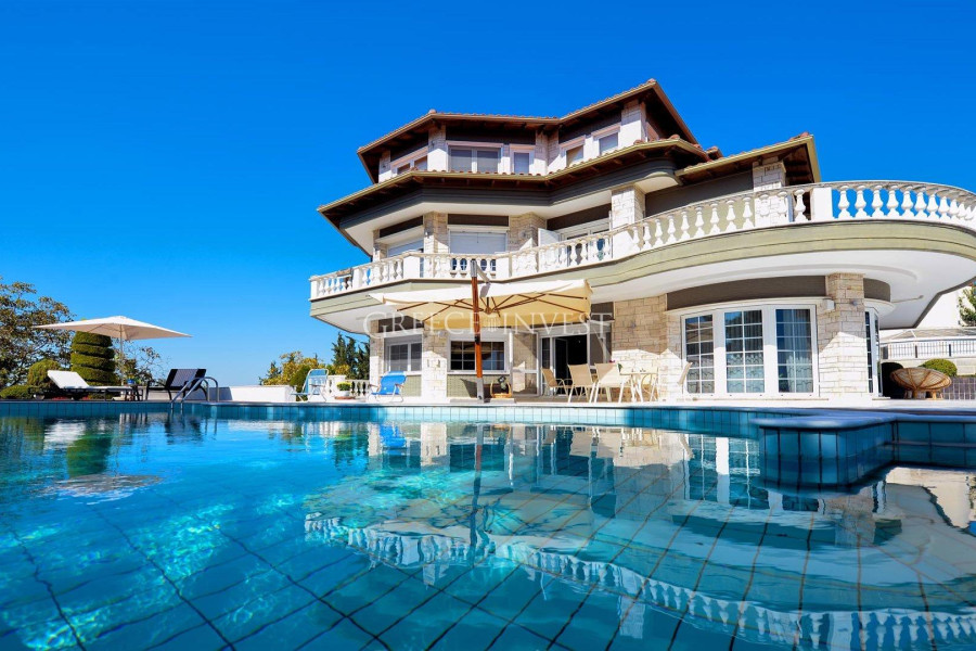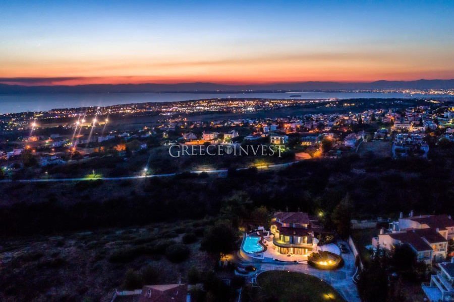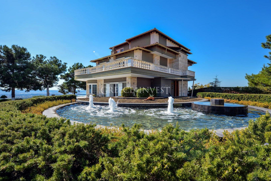 Die Villa mit herrlichem Meerblick liegt in der renommiertesten Gegend von Saloniki - Panorama. Auf dem Grundstück der Villa befinden sich ein Pool, ein Springbrunnen und eine große überdachte Garage.