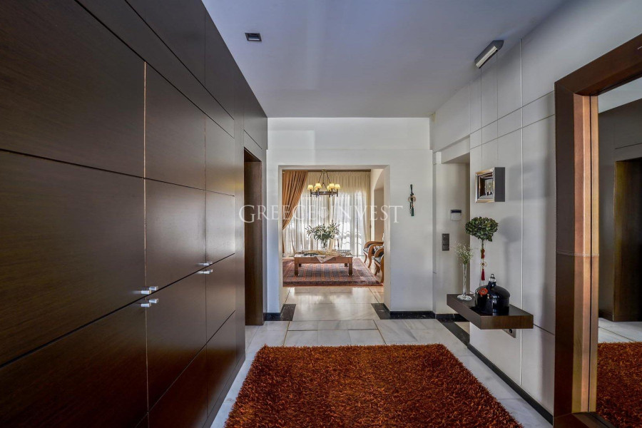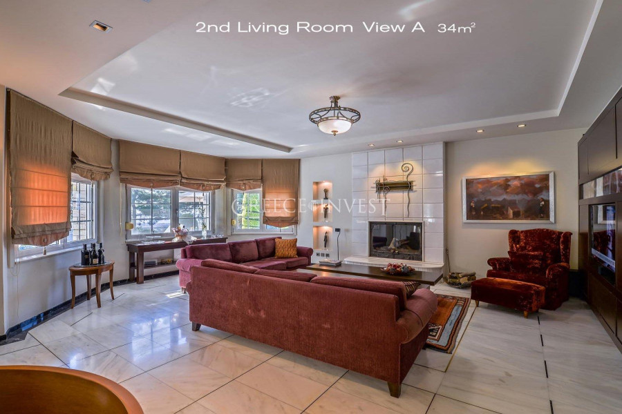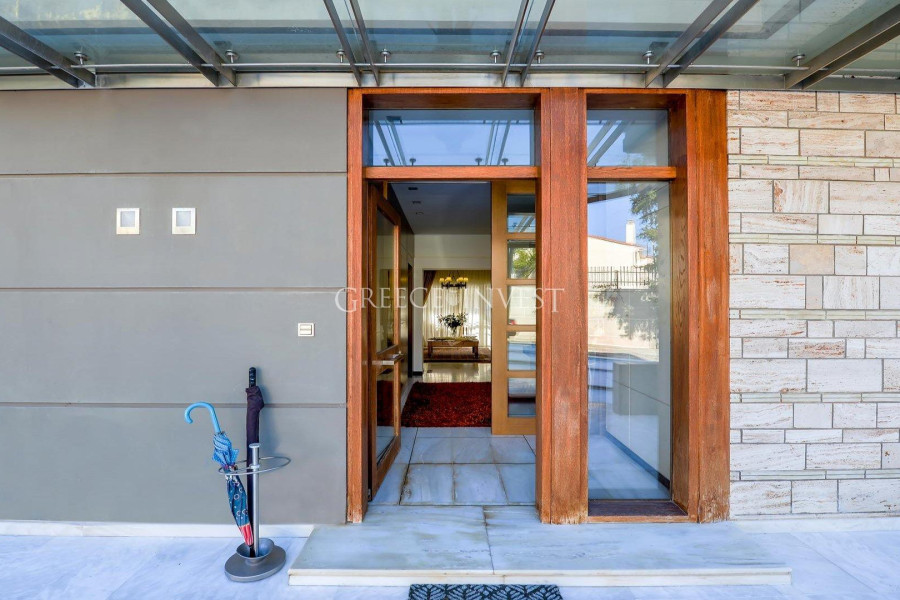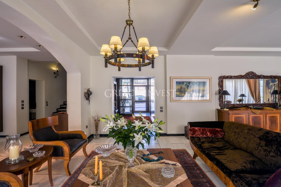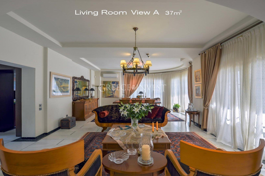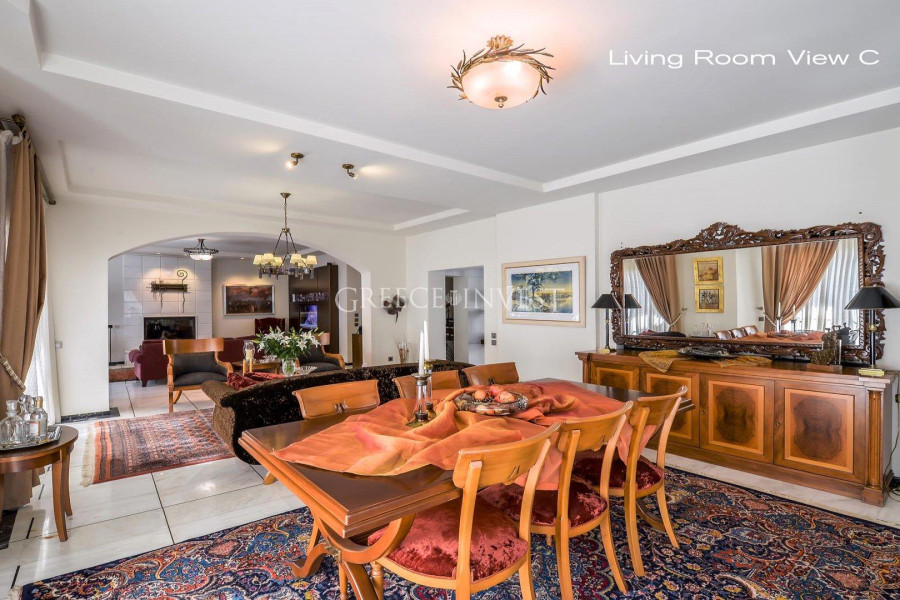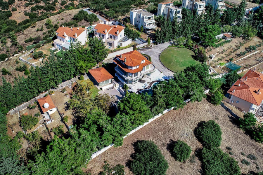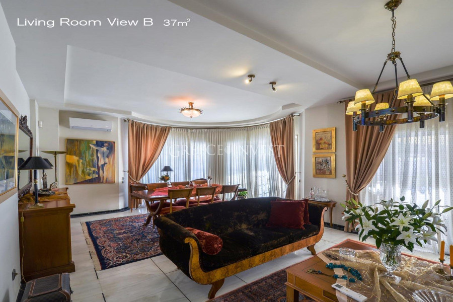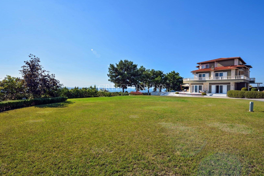 Die Villa mit herrlichem Meerblick liegt in der renommiertesten Gegend von Saloniki - Panorama. Auf dem Grundstück der Villa befinden sich ein Pool, ein Springbrunnen und eine große überdachte Garage.