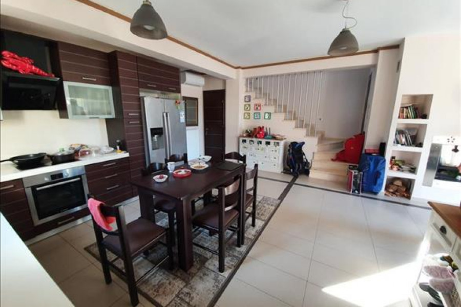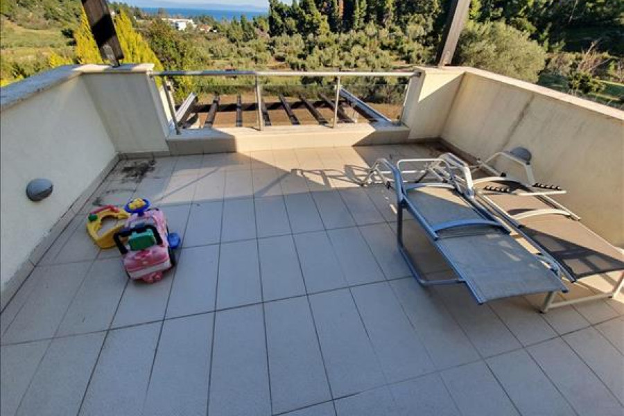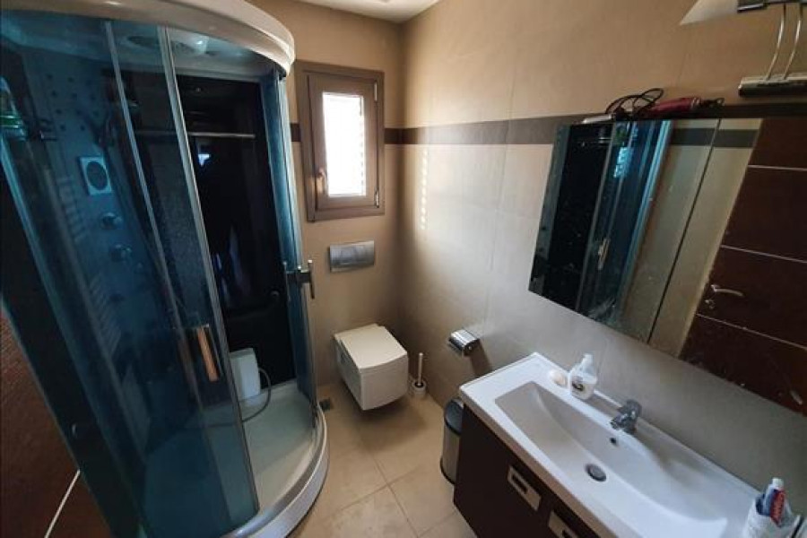 Verkauf 2-Etage Einfamilienhaus Wohnflaeche 140 q.m auf Kassandra (Chalkidiki). Das Kellergeschoss besteht ausein Schlafzimmer, Wohnküche, eine Dusche, ein WC.
