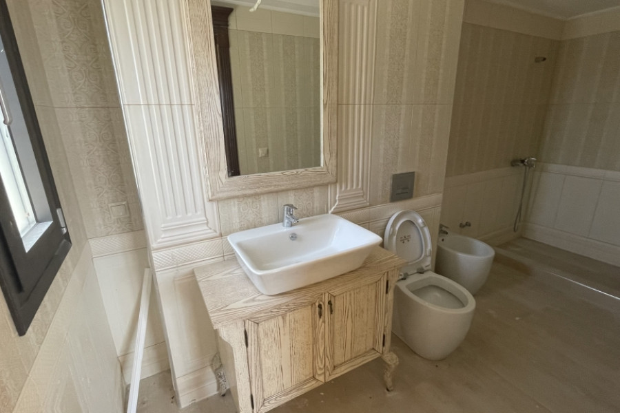 ID Immobilien: HPS1380 - Paliouri, Villa Fassade 3 Etagen ZU VERKAUFEN Wohnfläche von ca. 480 m2, im Erdgeschoss. Besteht aus 8 Schlafzimmer, offene Wohnküche, 2 Bäder , 3 WC. Wurde im Jahr 2000 gebaut verfügt über Heizung: autonome - Öl