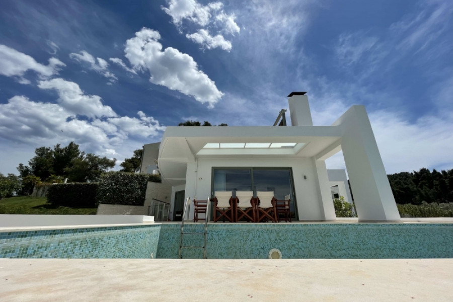 ID Immobilien: HPS3191 - Paliouri, neugebaut Villa Fassade 2 Etagen ZU VERKAUFEN Wohnfläche von ca. 200 m2, im Erdgeschoss. Besteht aus 5 Schlafzimmer, offene Wohnküche, 3 Bäder , WC. Wurde im Jahr 2019 gebaut verfügt über Heizung: Individuell - Öl, Blick auf den Meer, Fenster und Türen: Aluminium, Tür: Sicherheitstür, Aufzug, Parkplatz, Lager, Garten, Kamin, Pool, Klimaanlage, möbliert - eingerichtet, hell, Beschattungssystem , Solar Boiler , gestrichen, Balkons 30 m2 - Kaufpreis: 990.000 €