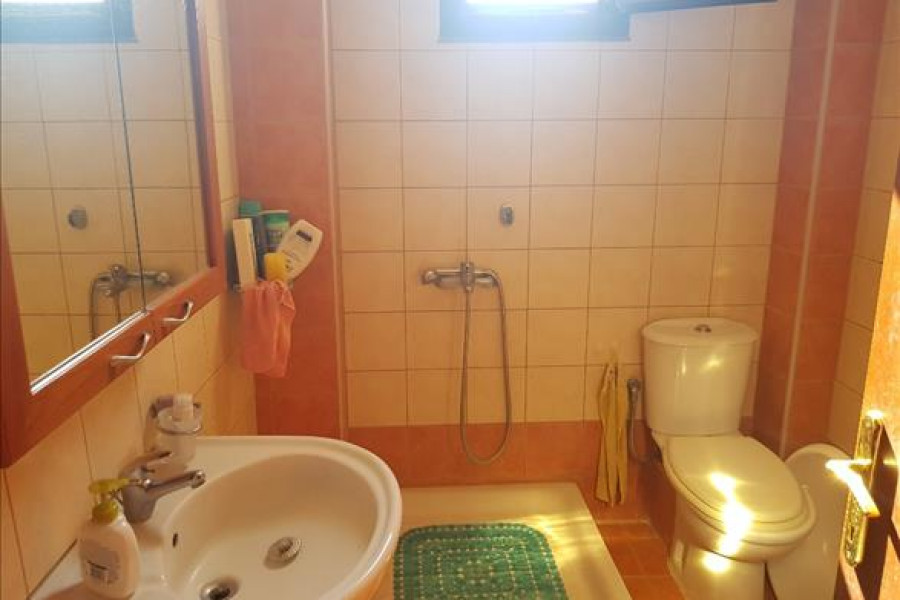 Verkauf 3-Etage Einfamilienhaus Wohnflaeche 160 q.m auf Kassandra (Chalkidiki). Das Kellergeschoss besteht ausein Schlafzimmer, Wohnküche, ein WC.