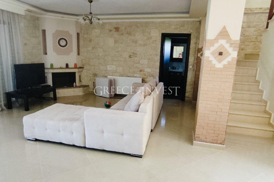 Dieses Haus ist ein Beispiel für hochwertige Bauweise, das für komfortables Wohnen konzipiert wurde. Alle Wände sind mit Naturstein verkleidet, was dem Haus ein einzigartiges und attraktives Aussehen verleiht. Es verfügt über zwei Stockwerke und bietet Platz und Komfort für seine Bewohner.