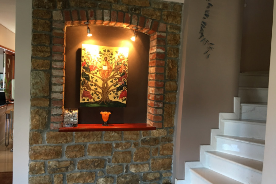 Villa ist doppelfassade Layout Bietet an schoen auf den Berg, in der Stadt, beinhaltet auch Moebel, Kamin, Parkplat, Garten, Rasen, Grill, Heizung, Alarm, Abstellraum.