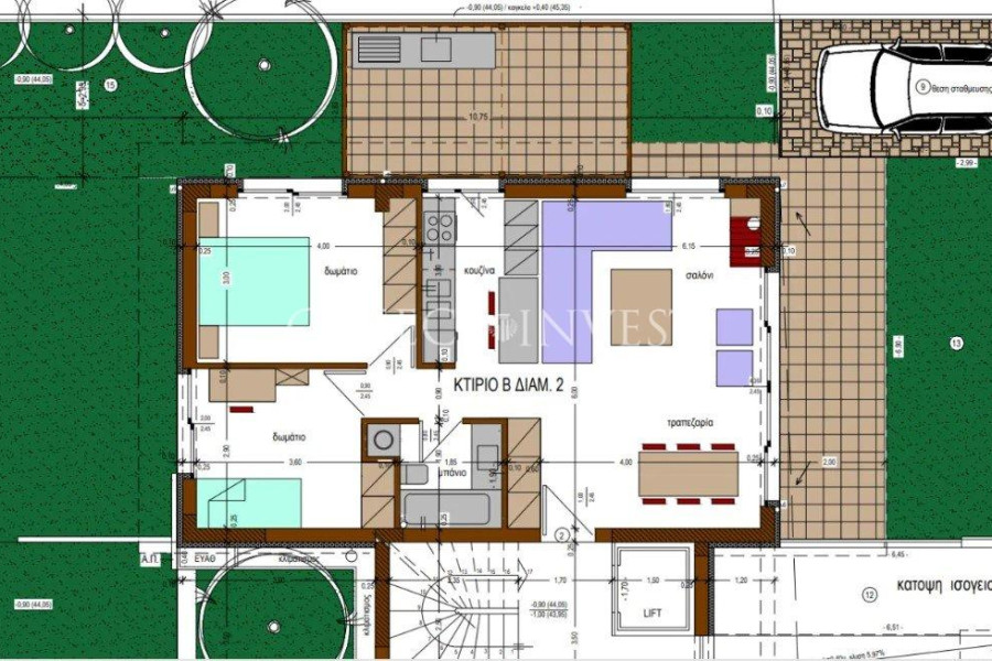 Die Fläche jeder Wohnung beträgt 90 qm. Die erste Wohnung besteht aus einem Wohnzimmer, einem Esszimmer, einer Küche, 2 geräumigen Schlafzimmern, einem Badezimmer und einem Abstellraum. Außerdem verfügt sie über einen exklusiven Garten mit einer Fläche von 118 qm mit einem Gartenpavillon, einer Terrasse und einem Grillplatz sowie einen eingezäunten Parkplatz auf dem Grundstück (mit automatischem Tor). Der Zugang zur Wohnung erfolgt über einen gemeinsamen Eingang zum Gebäude, und das Gelände ist vollständig umzäunt. Die zweite Wohnung besteht aus einem Wohnzimmer, einem Esszimmer und einer Küche, 2 geräumigen Schlafzimmern, einem Badezimmer und einem Abstellraum. Sie verfügt außerdem über einen eingezäunten Parkplatz auf dem Grundstück (mit automatischem Tor).