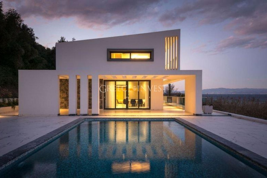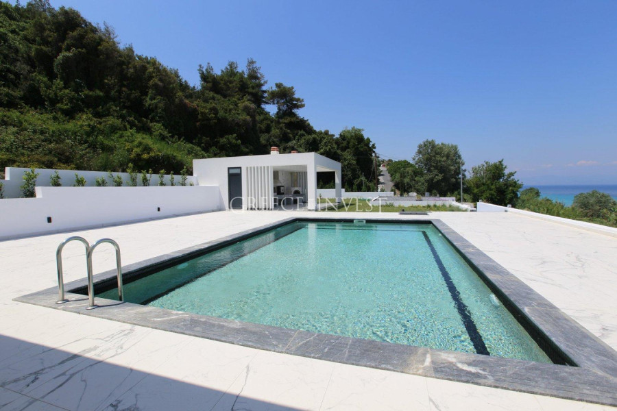 Moderne Villa mit Meerblick, in der Nähe eines Sandstrandes. Die Villa gehört zu einem Komplex von freistehenden Villen mit Service. Die Villa erstreckt sich über drei Ebenen und verfügt über ein Grundstück von 10 Ar. Sie besteht aus einem Wohnzimmer, einer Küche, 5 Schlafzimmern und 6 Badezimmern. Die ganzjährige Infrastruktur ist 200 Meter entfernt.