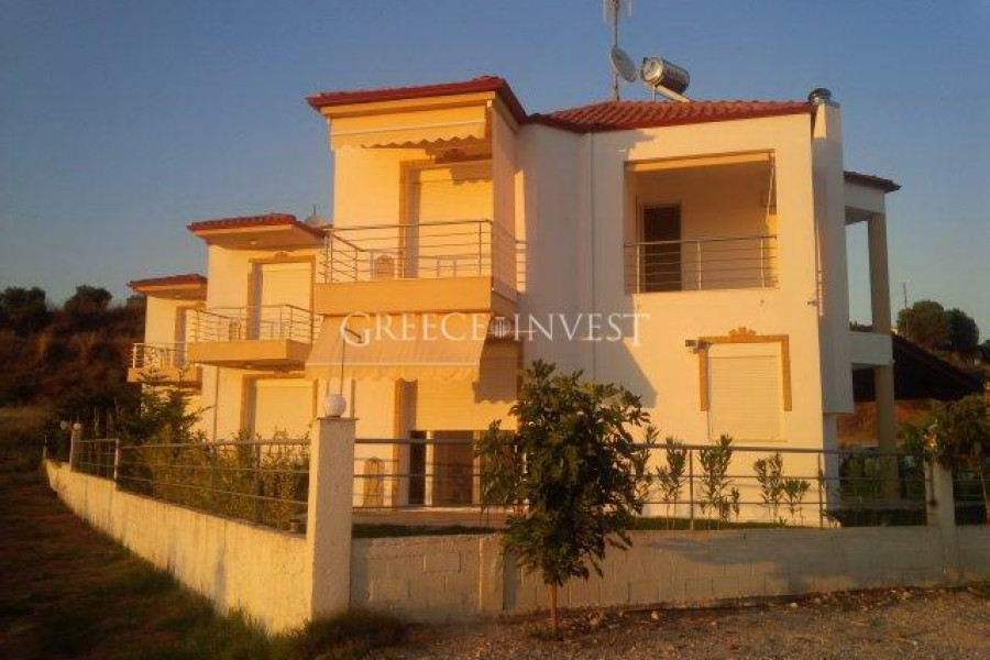 Zum Verkauf steht ein Reihenhaus in malerischer Lage im Ferienort Mouries an der Küste der Halbinsel Chalkidiki.