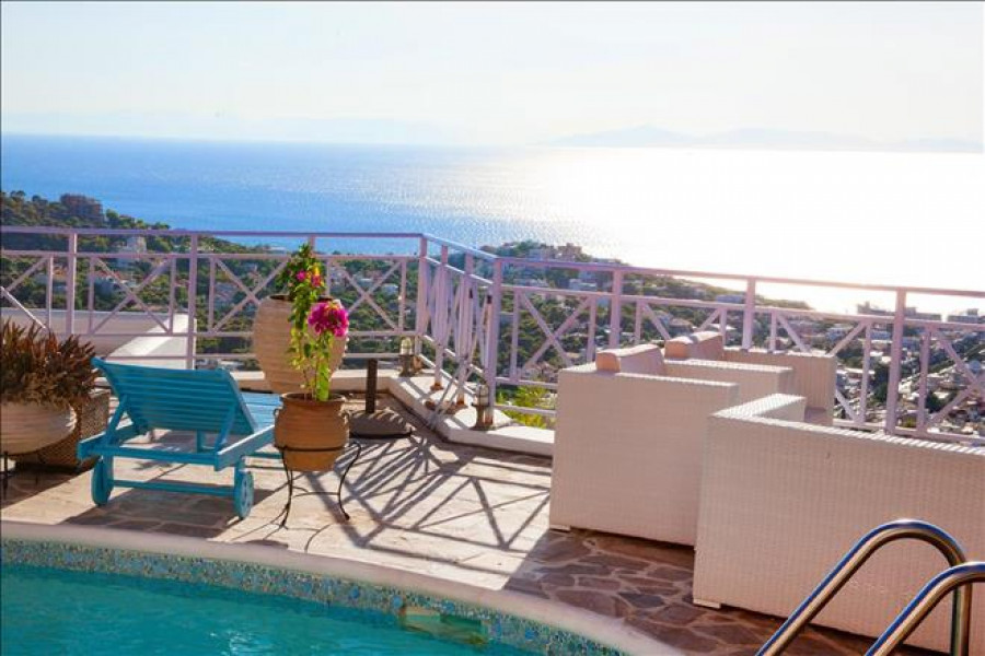 Villa ist front-layout Bietet an schoen auf das Meer, auf den Berg, in der Stadt, beinhaltet auch Moebel, Solarwarmwasserbereiter, Kamin, Klimaanlage, Pool, Parkplat, Garten, Grill, Aufzug, garage, Heizung, Alarm, Abstellraum.