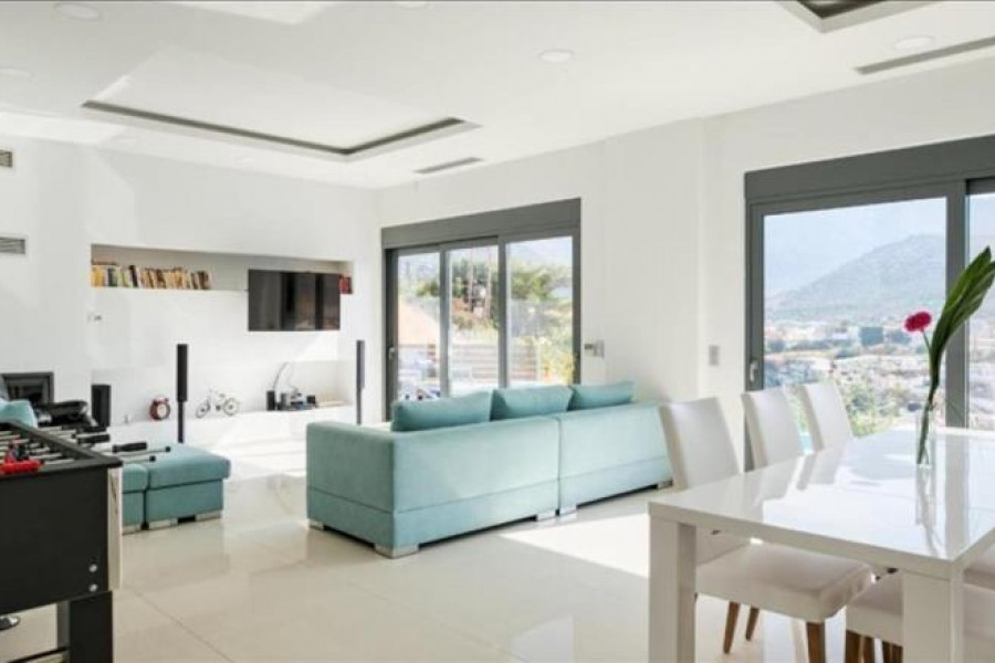 Villa ist front-layout Bietet an schoen auf das Meer, auf den Berg, in der Stadt, beinhaltet auch Moebel, Solarwarmwasserbereiter, Kamin, Klimaanlage, Markisen, Pool, Parkplat, Garten, Rasen, Grill, Heizung, Alarm, Abstellraum.