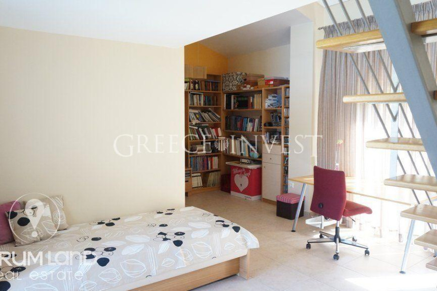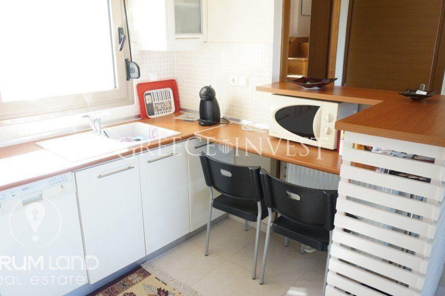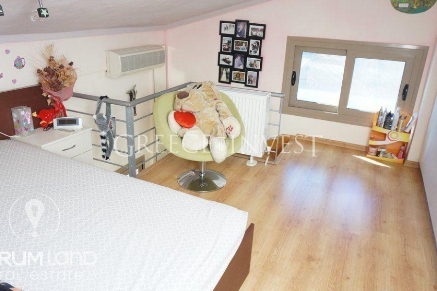 Im Erdgeschoss befindet sich ein geräumiges Wohnzimmer mit einem Kamin, eine separate Küche, ein Badezimmer und das Hauptschlafzimmer. Im Obergeschoss gibt es eine separate Wohnung mit ca. 90 Quadratmetern, bestehend aus einem Wohnzimmer mit Kamin, einer komfortablen Küche und 2 Hauptschlafzimmern. Das Ferienhaus verfügt über Lagerräume, eine Alarmanlage und eine Videogegensprechanlage, einen Solarwarmwasserbereiter, gepanzerte Türen, Klimaanlagen, wärmedämmende Aluminiumrahmen mit Doppelverglasung und Parkplätze.