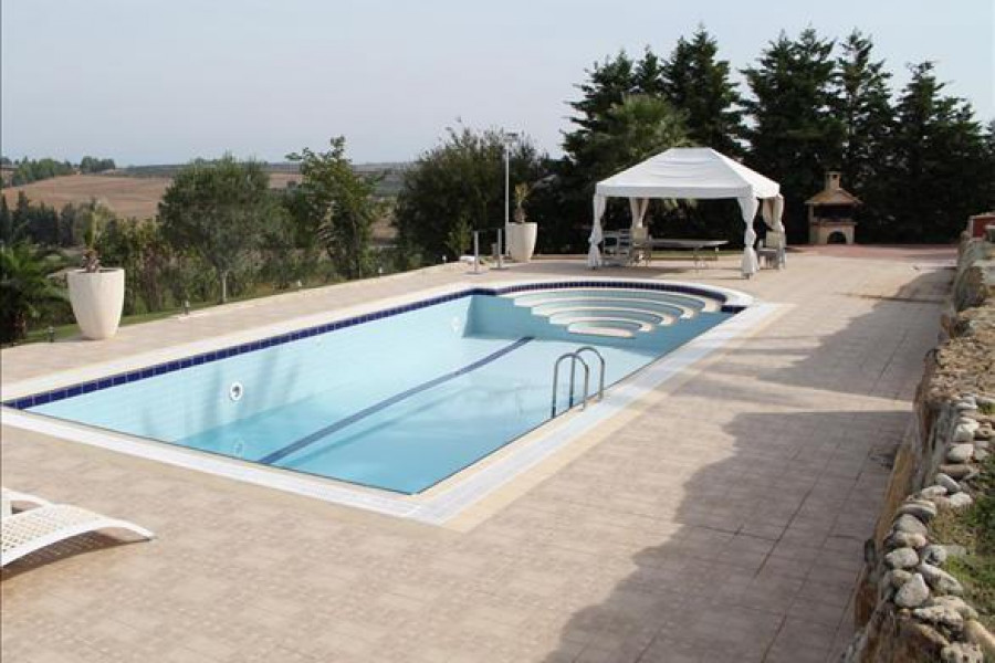 Villa ist Innenraumgestaltung beinhaltet auch Moebel, Solarwarmwasserbereiter, Kamin, Klimaanlage, Pool, Parkplat, Garten, Rasen, Grill, Heizung, Alarm, Abstellraum.