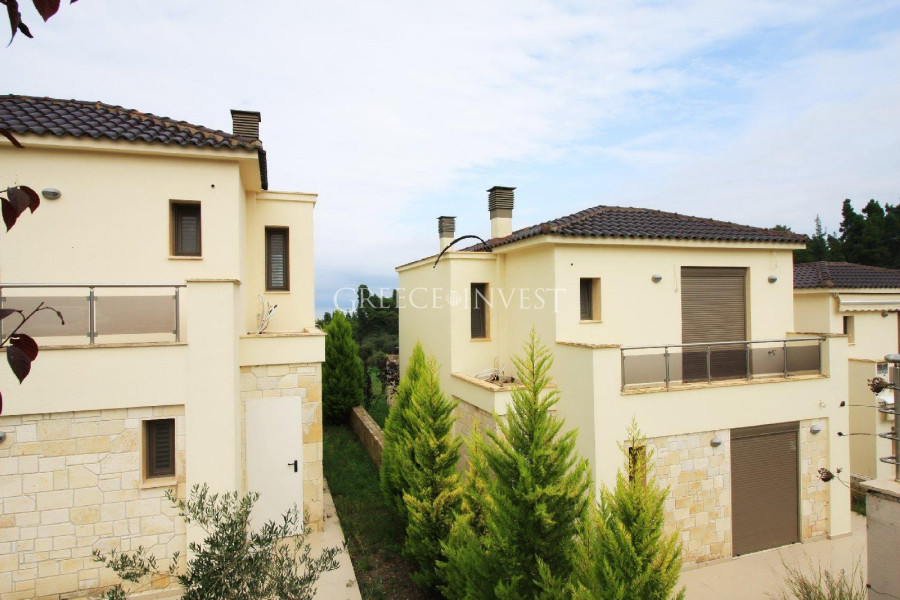 Kleiner Komplex mit vier Ferienhäusern im Herzen von Kassandra auf einem Hügel, umgeben von Kiefernwald. Nur noch ein Ferienhaus ist zum Verkauf. Alle Ferienhäuser bieten einen herrlichen Blick auf das Meer. Breiter Sandstrand. Entfernung zum nächsten Touristendorf beträgt 1, 5 km. Es wurden nur hochwertige Baumaterialien verwendet. Das Ferienhaus ist neu und erstreckt sich über zwei Etagen.