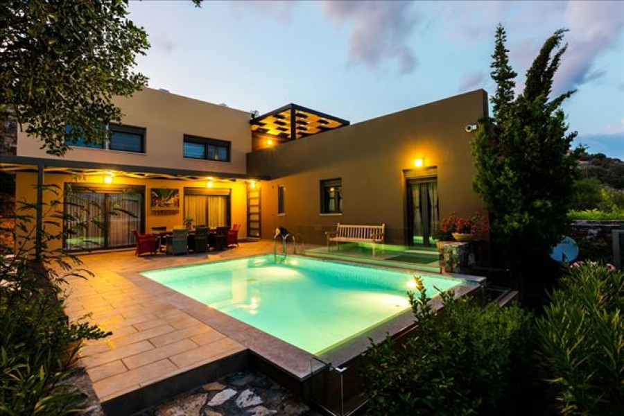 Villa ist front-layout Bietet an schoen auf das Meer, auf den Berg, in den Wald, beinhaltet auch Moebel, Solarwarmwasserbereiter, Kamin, Klimaanlage, Pool, Heizung, Abstellraum.