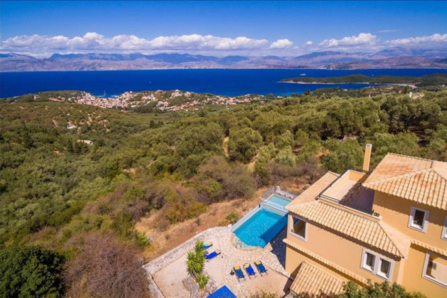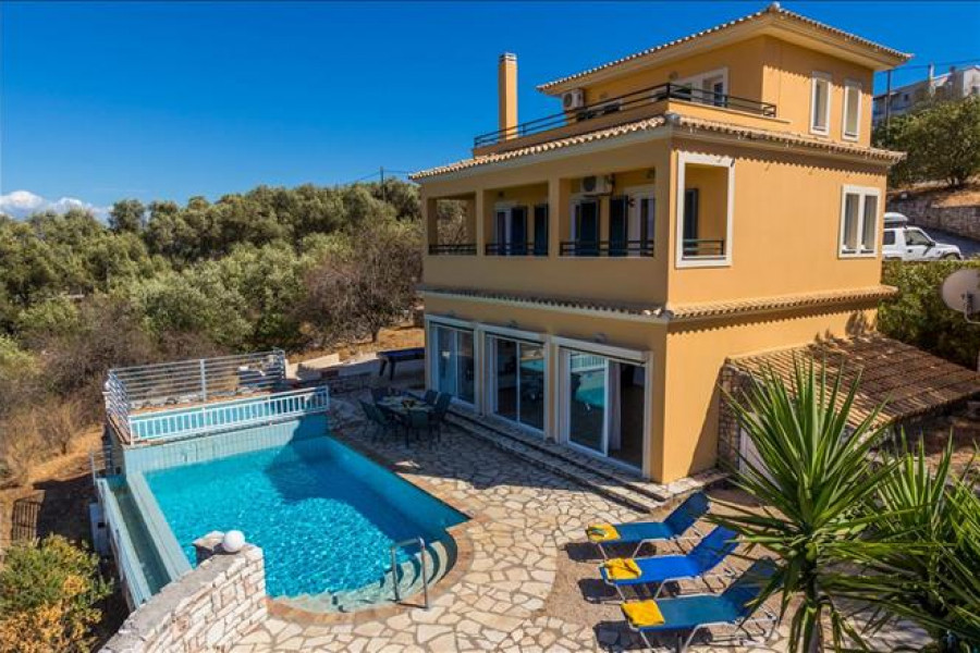 Verkauf 3-Etage Villa Wohnflaeche 240 q.m auf Korfu. Das Kellergeschoss besteht ausWohnküche, eine Küche , ein WC. Das Untergeschoss besteht aus2 Schlafzimmern, ein Badezimmer, eine Dusche. Das Erdegeschoss besteht ausein Schlafzimmer, ein Badezimmer. Villa ist Innenraumgestaltung beinhaltet auch Moebel, Kamin, Klimaanlage, Pool, Parkplat, Rasen, Grill, Alarm.