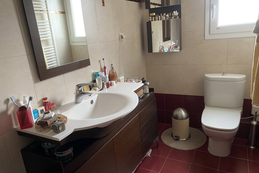 Zweite Etage mit 2 normalen Schlafzimmern1 Hauptschlafzimmer, 2 Bäder und Flur. Es gibt einen großen Dachboden, der als Abstellraum genutzt wird.