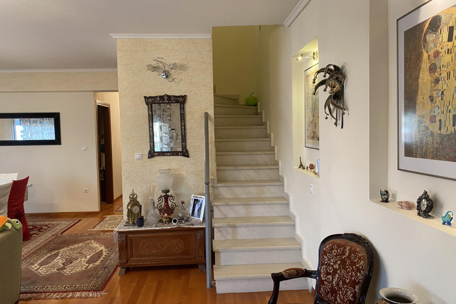 Die Maisonette-Wohnung befindet sich in zentraler Lage in Trilofo, alle Geschäfte und Dienstleistungen sind in der Nähe. Es wurde 2005 gebaut und 2018 mit hochwertigen Materialien, moderner Dekoration und vollständiger Wärmedämmung renoviert. Es wird mit den festen Möbeln verkauft. Die mobile Ausstattung der Maisonettewohnung ist verhandelbar. Sie erstreckt sich über drei Ebenen.