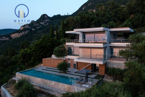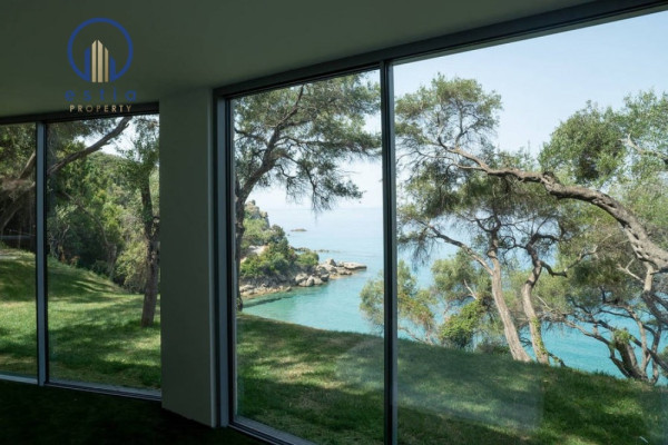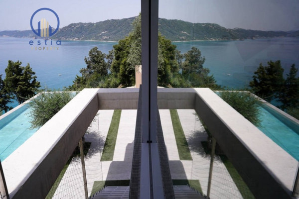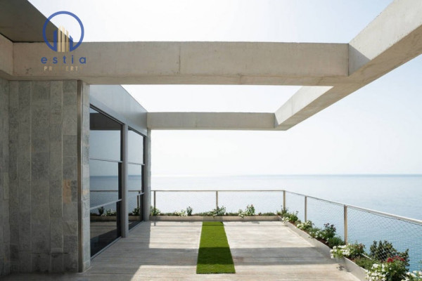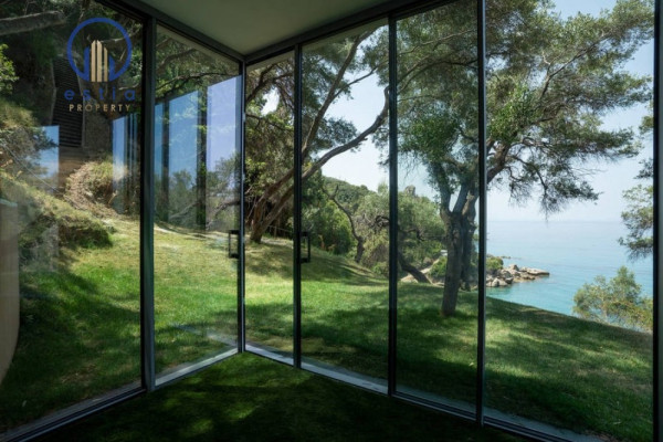Auf der Ebene des Wohnzimmers werden Sie von einem großen Wohnzimmer mit einem großen Kamin begrüßt. Nach unten finden Sie drei Schlafzimmer mit drei privaten Badezimmern für jedes Zimmer. Große Gleitfenster mit einem Mindestrahmen von nur 2, 5 cm und ohne sichtbares Rahmen auf dem Boden öffnen alle Räume für den atemberaubenden Blick auf das ionische Meer und die unvergesslichen Sonnenuntergänge.