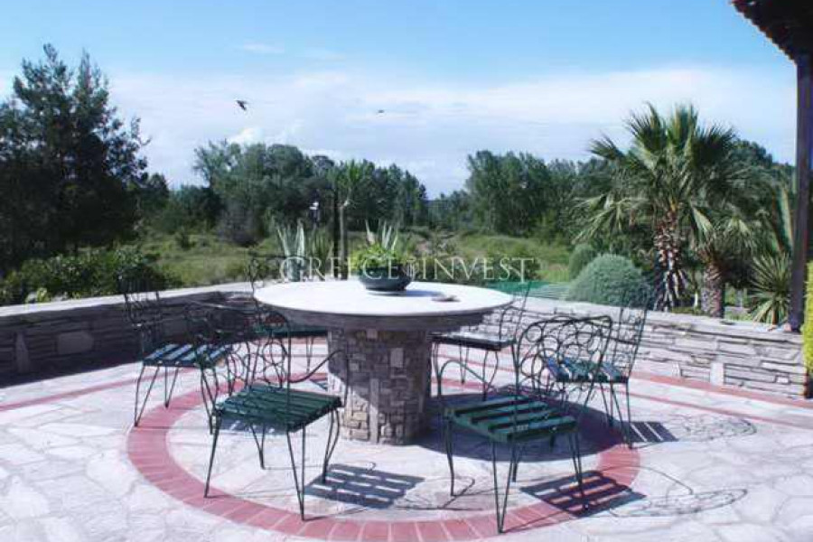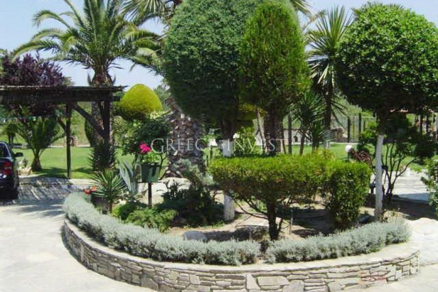 Wunderschöne Villa im traditionellen griechischen Stil mit einer Fassadenverkleidung aus natürlichen Natursteinen. Die Villa verfügt über ein 20-Ar-Grundstück mit einer wunderschönen Landschaftsgestaltung und etwa 10 Palmen. Auf dem Grundstück gibt es auch einen Pavillon mit einer kleinen Küche sowie einem authentischen handgemauerten Dorfofen und einem kleinen dekorativen Pool. Es gibt eine automatische Bewässerungsanlage und einen neuen Tiefbrunnen auf dem Grundstück. Die Villa befindet sich in einem perfekten Zustand.