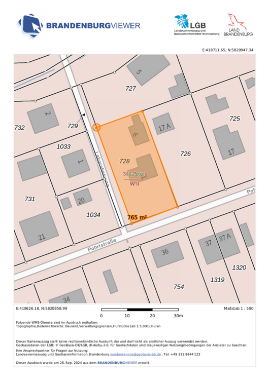 Flurkarte-Fb.. - BAUTRÄGERFREIES GRUNDSTÜCK IN DER POHRTSTRAßE - IN PETERSHAGENEGGERSDORF......