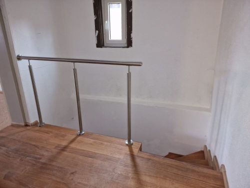 Obergeschoss: Wohnzimmer (Kork), Küche (Kork), Flur (Holzboden), Bad mit Wanne, Duschvorrichtung und WC (Fliesen), Kinderzimmer (Kork) Dachgeschoss: Schlafzimmer (Kork), Kinderzimmer (Kork), Flur (Kork) Erdgeschoss: Eingangsbereich (Fliesen), kleiner Keller (denkbar für Wärmepumpe), WC ohne Installationen, Gewölbekeller ca. 1600) Hof mit Platz für mindestens 2 Autos Kleine überdachte Unterstellfläche.