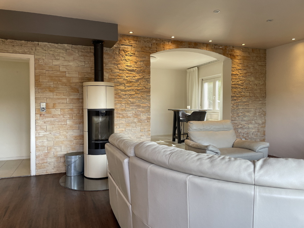 Highlights auf einen Blick: Wohnfläche: ca. 219 m² auf drei Ebenen Grundstück: liebevoll gestalteter Garten mit Natursteinmauern, Rasen- und Beetflächen sowie einem Gerätehaus Fahrzeuge: Garage mit gefliestem Boden, 2 Carports (einer davon mit Tor), sowie 3-4 weitere PKW-Stellplätze auf der Hoffläche Terrasse und Balkon: Großzügige Freiflächen, darunter eine Terrasse mit gemauertem Grill und überdachte Balkone mit Blick ins Grüne Flexibles Wohnen: Optimal für eine große Familie oder als Mehrgenerationenhaus Raumaufteilung: Kellergeschoss: Garage mit elektrischem Sektionaltor und direktem Zugang ins Haus Separater Eingang vom Hof 2 Zimmer, WC, Hauswirtschaftsraum, Heizung und Öl-Tankraum Wohnfläche: ca. 32 m² plus ca. 35 m² Nutzfläche Erdgeschoss: 4 Zimmer, Küche, Bad Überdachter Balkon Wohnfläche: ca. 96 m² Dachgeschoss: 3 Zimmer, Küche, Bad Überdachter Balkon mit herrlicher Aussicht Wohnfläche: ca. 91 m² Zusätzlich ist der Dachboden über eine praktische Klapptreppe erreichbar. Technische Details: Heizung: Öl-Zentralheizung (WOLF, Baujahr 2005) mit 3 x 1500-Liter-Tanks Zusatzheizung: Kaminofen im Wohnzimmer der Hauptwohnung und Fußbodenerwärmung in Flur und Küche Bodenbeläge: Fliesen, Vinyl, Parkett, Laminat Baujahr: Ursprünglich 1970, Dachaufstockung 1980 Zustand und Investitionen: Das massiv gebaute Haus wurde in den letzten 10 Jahren umfangreich modernisiert. Überzeugen Sie sich selbst von der Qualität und den liebevollen Details bei einer Besichtigung! Energiekennwerte: Energiebedarfsausweis: 216 kWh/m²a (Effizienzklasse G) Heizungsart: Öl (Baujahr 2005) Das Haus wird in den kommenden Wochen frei und ist kurzfristig verfügbar. Lassen Sie sich diese Gelegenheit nicht entgehen und vereinbaren Sie einen Besichtigungstermin!