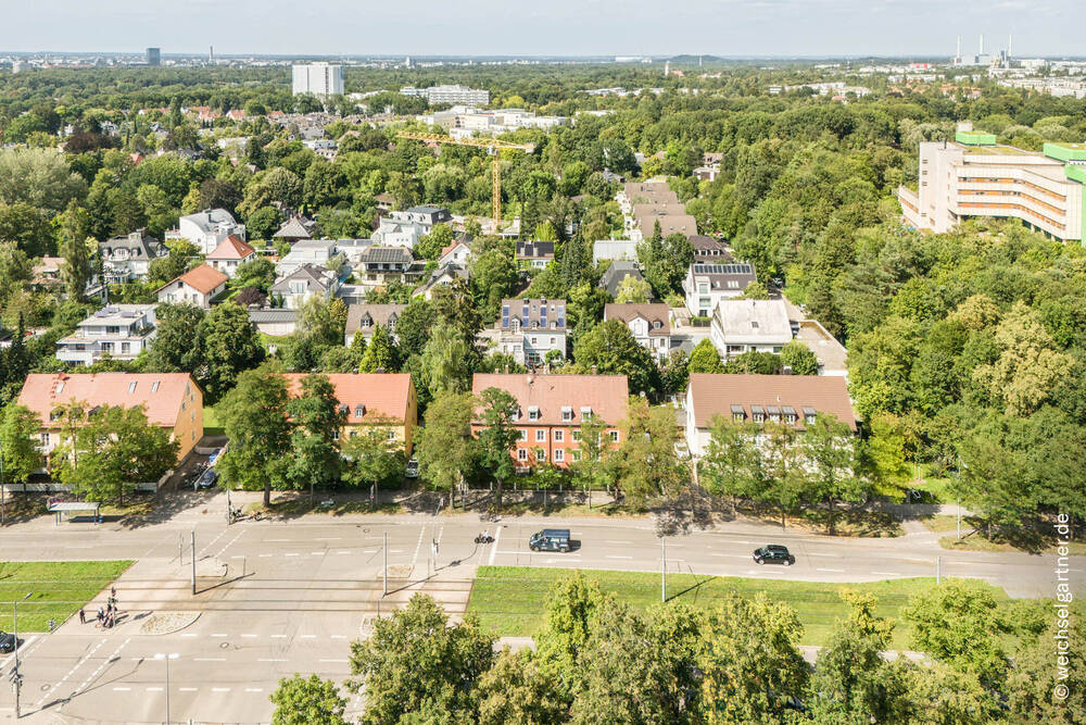 • Luftbildaufnahme - Mehrfamilienhaus, Wohnhaus in München