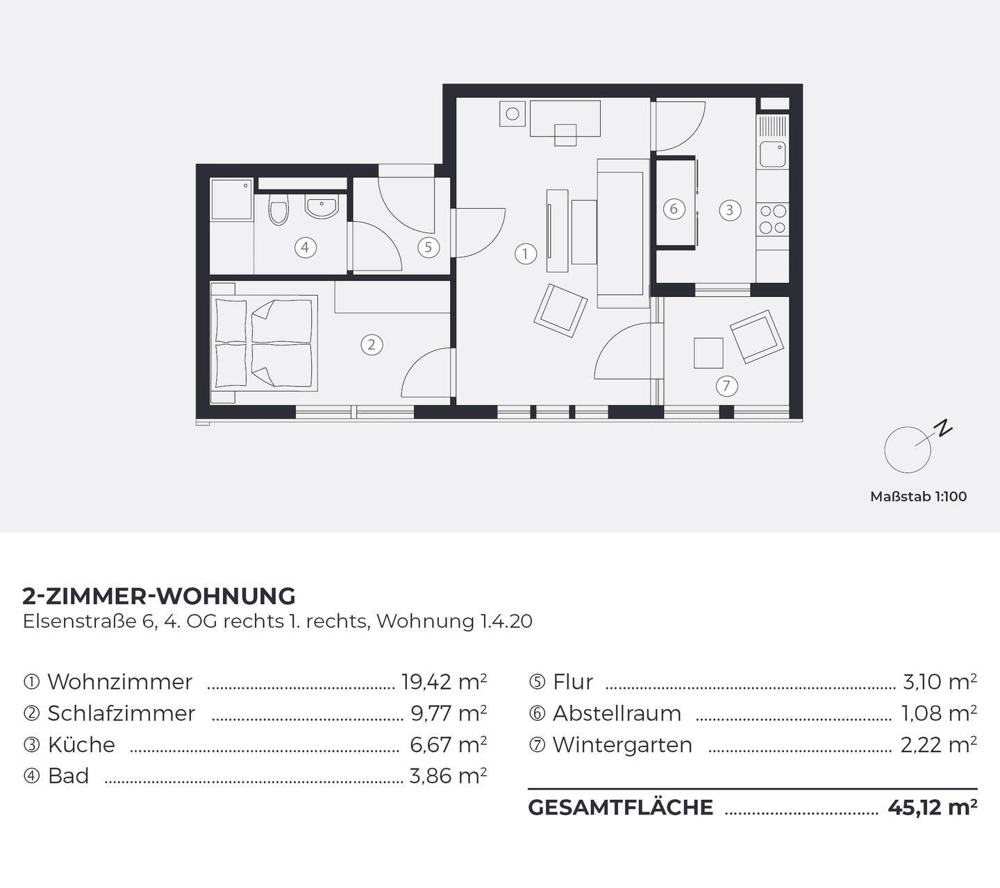 Wohnfläche:ca. 46,10 m²