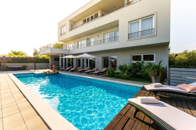 Energieausweis: ZU DIESER IMMOBILIE LIEGT DERZEIT NOCH KEIN ENERGIEAUSWEIS VOR. IN VORBEREITUNG. Luxuriöse Villa mit Meerblick Diese geräumige Villa befindet sich in Medulin, 450 m vom Meer entfernt. Gesamtwohnfläche: 330 m2, bestehend aus Erdgeschoss, erster und zweiter Etage. Erdgeschoss: Eingangsbereich, Toilette, Waschküche, offene Küche, Esszimmer, Wohnzimmer und Zugang zur überdachten Terrasse mit Al-fresco-Essen mit separater Toilette und Abstellraum. Erster Stock: 4 Schlafzimmer mit eigenem Bad und Zugang zur Terrasse mit schönem Blick auf das Meer. Zweite Etage: Hauptschlafzimmer mit eigenem Bad und Zugang zu einer Terrasse mit Meerblick, ein weiteres Wohnzimmer mit Zugang zu einer großen überdachten Terrasse. Auf dem 921 m2 großen Grundstück gibt es einen 45 m2 großen Pool, eine schöne Sonnenterrasse, einen Lounge-Bereich, eine separate überdachte Sommerküche und einen Whirlpool. Die Villa ist voll ausgestattet und bietet kompletten Komfort als Wohnhaus oder als Investition für touristische Zwecke. Investitionsrendite 6, 5-7% pro Jahr. Interesse? Bitte senden Sie uns ein VOLLSTÄNDIG augefülltes Kontaktformular zu, Sie erhalten dann umgehend ein ausführliches Exposé. ACHTUNG MAKLER: Wir freuen uns auf eine Zusammenarbeit. Alle Angaben stammen vom Verkäufer der Immobilie. Ohne Gewähr! Anfragen nur über das Kontaktformular. Bitte keine telefonischen Anfragen. Vielen Dank. Weitere Informationen, Fotos, Grundriss und Lagepläne finden Sie, indem Sie hier auf den folgenden Link Klicken: www.blueHOMES.com blueHOMES AG ...die schönsten Häuser Europas...