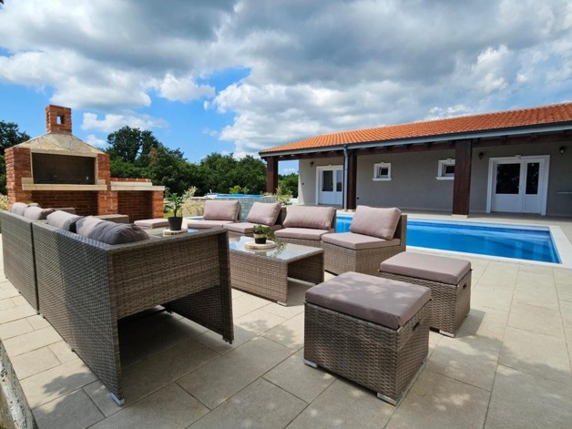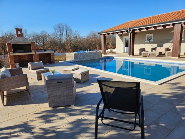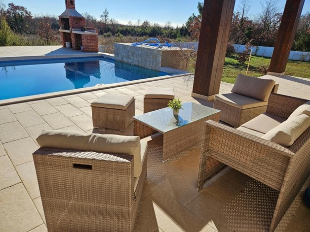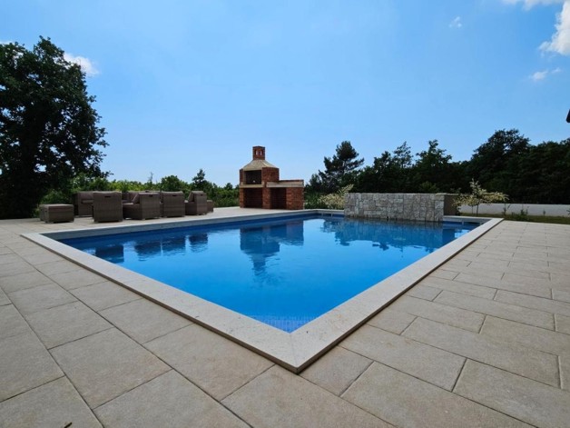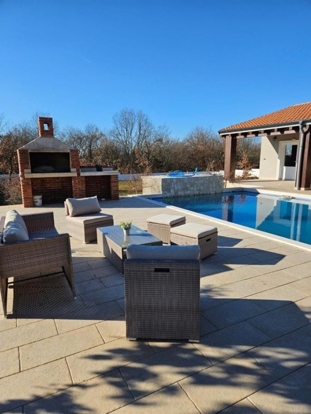 Energieausweis: ZU DIESER IMMOBILIE LIEGT DERZEIT NOCH KEIN ENERGIEAUSWEIS VOR. IN VORBEREITUNG. Eine wahres Juwel steht zum Verkauf: 250 qm - Wohnfläche, zusätzlich ein Studio ( ca. 40 qm ) mit Badezimmer en Suite und vorbereiteten Anschlüssen für eine smarte Küchenzeile und eigenem Zugang zur Terrasse. Das Haupthaus besticht mit seiner Großzügigkeit im Grundriss: alle Räume haben Zugang zur Terrasse, ein weitläufiger Wohn-Essbereich mit offener Küche, einem Storage, einem sep.WC und drei großen Schlafzimmern mit Badezimmern en-suite, selbstredend mit WalkInShower. Qualitativ ausgesprochen hochwertig und harmonisch in der Farbgebung. Im Wohn-/Essbereich, sowie im Flur wurde eine Fussbodenheizung installiert, selbstverständlich ebenfalls Klimaanlagen. Heizstrahler sorgen in den Badezimmern für angenehme Temperaturen an den Kühleren Tagen.Das sich harmonisch in die Landschaft eingefügt Grundstück hat eine Fläche von ca. 1400 qm. Bis zu 6 PKWs finden Platz auf der großzügigen Einfahrt.Das Haus wurde ausgesprochen hochwertig gestaltet: optimale Dämmung, Keramik, 3-fach Verglasung, u.v.m.Alles in Allem handelt es sich um eine hervorragende Lage am Rand eines Dorfes in der Svetvincenat. Ruhig, mit einer raschen Anbindung an die Strasse nach Pula.Wir freuen uns, Ihnen dieses Unikat persönlich präsentieren zu dürfen! Interesse? Bitte senden Sie uns ein VOLLSTÄNDIG augefülltes Kontaktformular zu, Sie erhalten dann umgehend ein ausführliches Exposé. ACHTUNG MAKLER: Wir freuen uns auf eine Zusammenarbeit. Alle Angaben stammen vom Verkäufer der Immobilie. Ohne Gewähr! Anfragen nur über das Kontaktformular. Bitte keine telefonischen Anfragen. Vielen Dank. Weitere Informationen, Fotos, Grundriss und Lagepläne finden Sie, indem Sie hier auf den folgenden Link Klicken: www.blueHOMES.com blueHOMES AG ...die schönsten Häuser Europas...