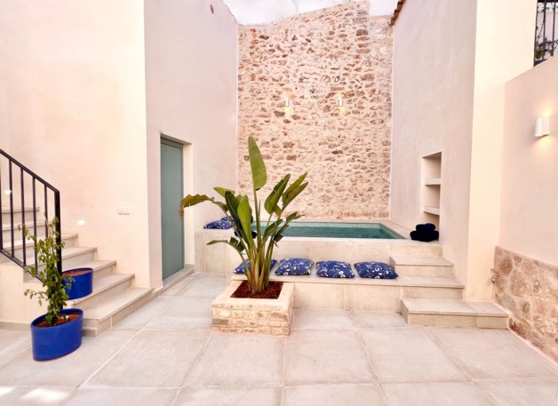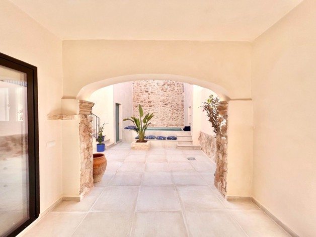 Energieausweis: ZU DIESER IMMOBILIE LIEGT DERZEIT NOCH KEIN ENERGIEAUSWEIS VOR. IN VORBEREITUNG. In der einmaligen Idylle der kleinen Altstadt wird Sie dieses charmante Casa De Pueblo bezaubern. Tradition, Lifestyle und Individualität verschmelzen in einer äußerst gemütlichen Symbiose zu exklusivem Wohnkomfort. Die im mediterranen Stil liebevoll gestaltete Immobilie besticht neben modernem neu-mallorquinem Charme und Trauminsel-Ambiente unter anderem auch durch seinen hübschen Innenhof - ein uneinsehbarer Patio, dessen Highlight ein kleiner Pool (3m x 2m) ist. Viele harmonische Wohndetails verströmen auf den beiden Etagen des Dorfhauses den besonderen Flair des Südens. Durch die offene Gestaltung im Erdgeschoss entstehen hübsche, lichtdurchflutete Räume, die zu jeder Jahreszeit zum Verweilen einladen. Der Wohn und Essbereich, die Küche und auch der direkt anschließende, überdachte Essplatz im Freien, bieten viel Platz und Spaß für besondere Genussmomente. Der alte Kamin aus Gusseisen und weitere, einzelne, aufgearbeitete, Vintage Details wie z.B. die alten Zimmertüren oder die traditionell mallorquinen Steinfassaden geben den Räumen den Hauch einer historischen Seele. Zwei von drei möglichen Schlafzimmern befinden sich im Obergeschoss, jedes verfügt über ein trendiges Bad en Suite. Vom Master-Schlafzimmer aus gelangt man direkt auf eine herrliche Sonnenterrasse und über eine Treppe in den Patio. Ein weiterer, flexibler Raum (Büro, Gäste- oder Kinderzimmer) im Erdgeschoss, der einladende Eingangsbereich, ein Abstellraum und ein drittes Badezimmer (mit Badewanne) runde Interesse? Bitte senden Sie uns ein VOLLSTÄNDIG augefülltes Kontaktformular zu, Sie erhalten dann umgehend ein ausführliches Exposé. ACHTUNG MAKLER: Wir freuen uns auf eine Zusammenarbeit. Alle Angaben stammen vom Verkäufer der Immobilie. Ohne Gewähr! blueHOMES AG ...die schönsten Häuser Europas...