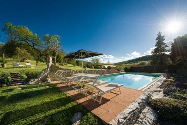 Energieausweis: ZU DIESER IMMOBILIE LIEGT DERZEIT NOCH KEIN ENERGIEAUSWEIS VOR. IN VORBEREITUNG. Typisches toskanisches Bauernhaus im Grünen, nur 10 Minuten vom Dorf Casole d´Elsa entfernt. Das Haus befindet sich auf zwei Etagen mit der Hauptwohnung im ersten Stock mit Zugang über eine externe Stein- und Ziegelsteintreppe, großem Wohnzimmer mit Holzofen, Küche, drei Schlafzimmern und zwei Badezimmern. Das Erdgeschoss zeichnet sich durch verschiedene Zimmer aus, die miteinander verbunden sind und über eine eindrucksvolle überdachte Loggia mit Kamin blicken, von der aus man in die ehemalige Scheune gelangt, die perfekt restauriert wurde. Die ehemaligen Stallungen wurden als Sommerküche und Lagerräume genutzt. Das Anwesen verfügt über ein kommunales Aquädukt, einen Brunnen und für die Bewässerung des Gartens rund um den Pool gibt es eine große Zisterne zum Sammeln von Regenwasser. Die Beheizung erfolgt durch einen Pellet- und Holzkessel sowie Sonnenkollektoren zur Warmwasserbereitung. Bedachung für Gartengeräte. Es hat eine Gesamtfläche von ca. 400 qm mit ca. 16.000 qm Land, das komplett mit automatischem Zugangstor umzäunt ist. Schönes und neu installiertes Schwimmbad mit Salzsystem mit einer Größe von 10x5 Metern. Charmante Ruhezone in einem in Terrakotta gepflasterten Bauernhof mit einer Fläche von 100 qm. Interesse? Bitte senden Sie uns ein VOLLSTÄNDIG augefülltes Kontaktformular zu, Sie erhalten dann umgehend ein ausführliches Exposé. ACHTUNG MAKLER: Wir freuen uns auf eine Zusammenarbeit. Alle Angaben stammen vom Verkäufer der Immobilie. Ohne Gewähr! Anfragen nur über das Kontaktformular. Bitte keine telefonischen Anfragen. Vielen Dank. Weitere Informationen, Fotos, Grundriss und Lagepläne finden Sie, indem Sie hier auf den folgenden Link Klicken: www.blueHOMES.com blueHOMES AG ...die schönsten Häuser Europas...