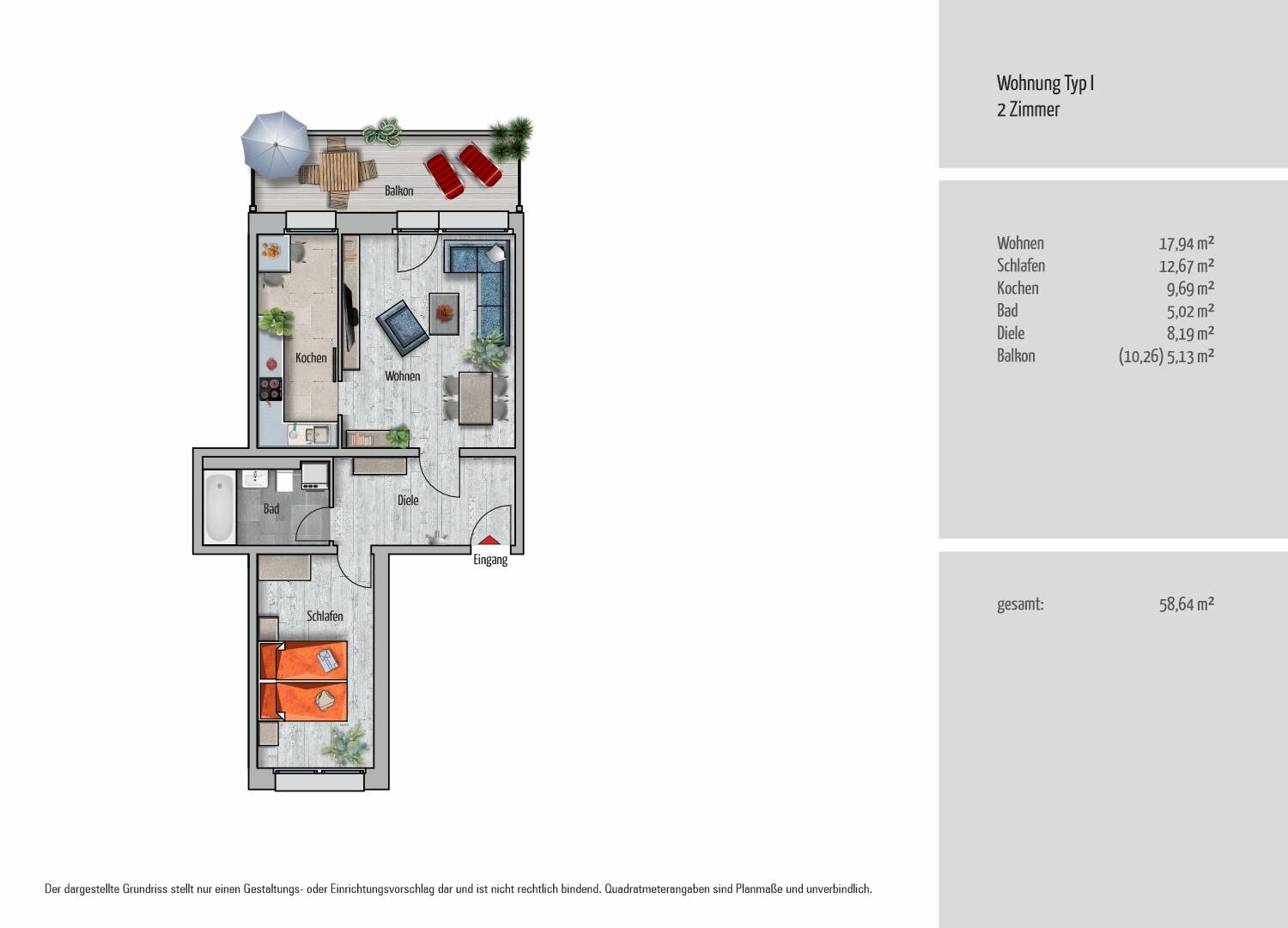 Wohnfläche: | ca. 58,60 m² |
