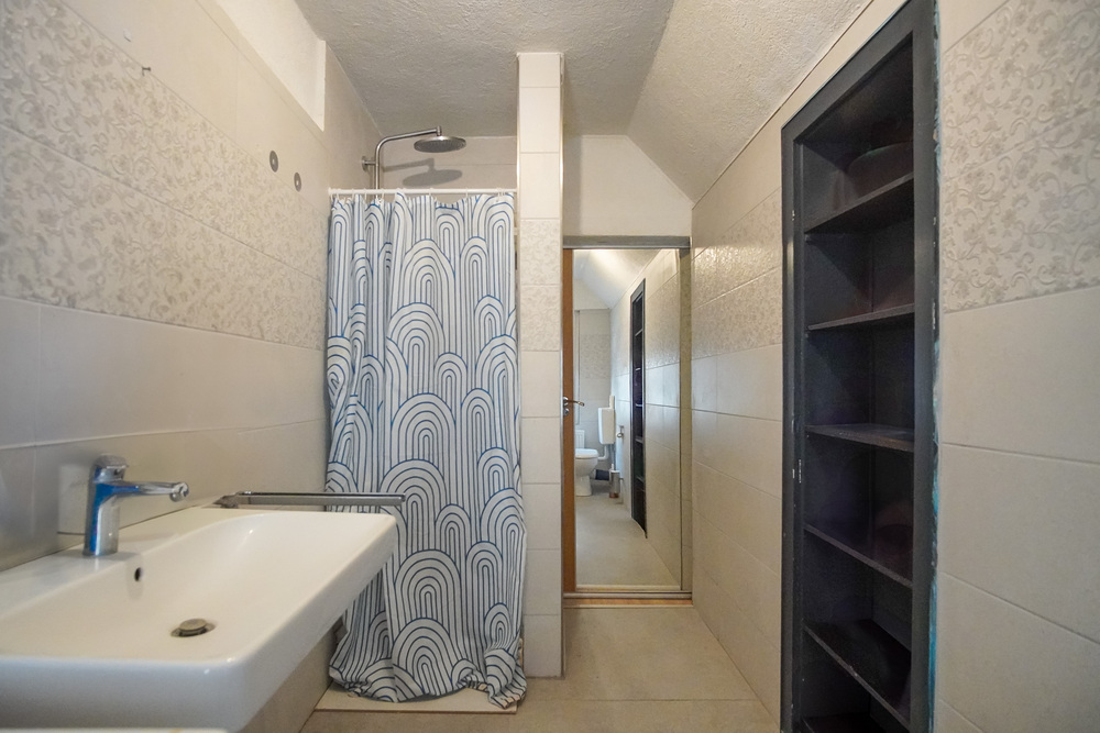 Von der Küche aus haben Sie Zugang zum sonnigen Garten sowie zum Anbau im rückwärtigen Teil des Hauses. Ein Flur führt weiter nach hinten, wo sich auf der rechten Seite das Tageslichtbad mit Dusche/WC und geradeaus eine funktionale Waschküche mit Platz für Waschmaschine, Trockner und zusätzlicher Stauraum befindet. Sie ist gleichzeitig der Durchgang zum überdachten Freisitz, der windgeschützt direkt neben der Garagenseite liegt – ideal für gesellige Abende oder entspanntes Verweilen im Freien.