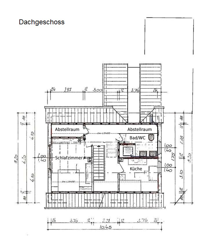 Dachgeschoss: Wohnkomfort auf einer zweiten Ebene Das ausgebaute Dachgeschoss bietet mit seinen ca. 46 m² weiteren wertvollen Wohnraum. Hier erwartet Sie ein großes Schlafzimmer, das viel Platz für individuelle Gestaltungsmöglichkeiten bietet. Ergänzt wird diese Etage durch ein weiteres Kinderzimmer, welches aktuell als Küche umfunktioniert wurde, ein Badezimmer mit WC und zwei praktische Abstellräume, die für Ordnung sorgen.