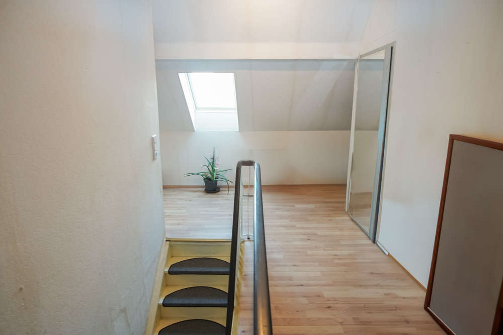 Ebenfalls in der Diele befindet sich eine Treppe, über die das ausgebaute Dachgeschoss erreicht wird.