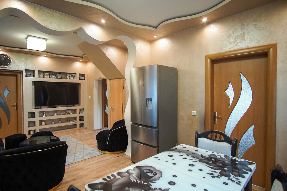 Nach dem Betreten des Hauses führt die Diele – von der rechtsseitig ein Zimmer abgeht, das sich ideal als Wohn-/Schlafzimmer oder Büro nutzen lässt – bis hin zum harmonisch gestalteten Wohn-/Essbereich. Hier gehen Küche, Esszimmer und Wohnbereich nahtlos ineinander über - eine moderne und zugleich funktionale Raumlösung, die Geselligkeit und kurze Wege perfekt miteinander verbindet.