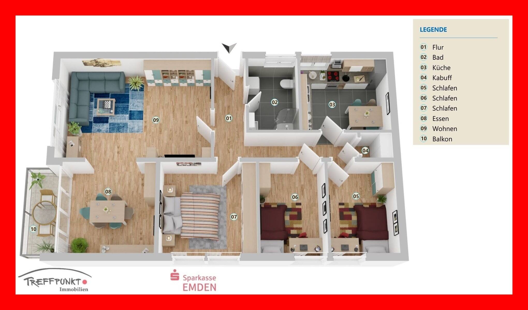 Sie befinden sich hier: Große Eigentumswohnung mit Balkon in Emden - 24Q5YXKZ75A2 | 1A-Immobilienmarkt.de