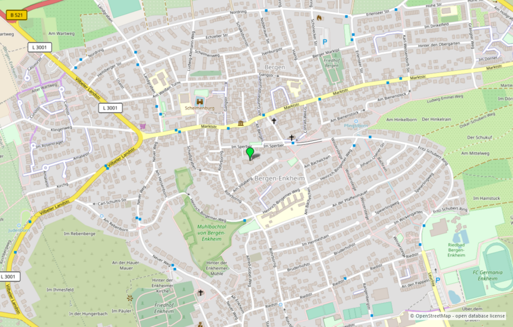 Bergen-Enkheim ist der östlichste Frankfurter Stadtteil mit mittlerweile knapp 18.000 Einwohnern. Er setzt sich zusammen aus den ehemals selbständigen Orten Bergen und Enkheim. Der Berger-Südhang gehört zu den bevorzugten Wohnlagen Frankfurts. Umfangreiche Einkaufsmöglichkeiten befinden sich sowohl in Bergen auf der Marktstraße als auch in Enkheim auf der Riedstraße und im nahegelegenen Hessencenter. In Bergen-Enkheim finden Sie drei Schulen sowie konfessionelle Kindergärten und eine gute öffentliche Verkehrsanbindung mit zwei U-Bahn-Linien, Straßenbahnanbindung und mehreren Buslinien. Das Zentrum von Frankfurt erreichen Sie in wenigen Fahrminuten.