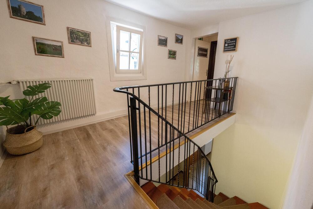 Raumangebot und Ausstattung: Gastrofläche: Ca. 218 m² mit gemütlicher Gastwirtschaft und einem kleinen Veranstaltungssaal (insgesamt ca. 45 Sitzplätze), ideal für Feiern, Vereinsabende oder kleinere Events. Pensionsbetrieb: 5 sehr schöne, modern ausgestattete Gästezimmer – jeweils mit eigenem Bad, teilweise mit Balkon und herrlichem Blick ins Grüne. Die Auslastung ist als sehr gut zu bezeichnen. Betreiberwohnung: 2 Zimmer, Küche, Diele und Badezimmer – ideal für den eigenen Bedarf oder als zusätzliche Vermietungsoption. Gastronomieküche: Modern und vollständig eingerichtet mit hochwertigen Edelstahlgeräten. Nebenräume: Zahlreiche Abstell- und Lagerräume, darunter Kühlraum, Vorratsräume und Bierlager, bieten optimale Voraussetzungen für einen reibungslosen Gastronomiebetrieb. Sanitäre Anlagen: Gäste-WCs im Restaurantbereich, insgesamt 6 Bäder im Haus. Technik: Moderne Gasheizung, erneuerte Fenster, neue Fußböden (Vinyl, Laminat, Fliesen), zeitgemäße Elektroinstallation und neue Dacheindeckung mit Dämmung. Teilunterkellerung mit weiteren Lager- /Nutzflächen und Kühlraum. Parkplätze: 13 PKW-Stellplätze direkt auf dem Grundstück – ausreichend für Gäste und Personal. Großer Garten: Die gepflegte, weitläufige Grünfläche mit herrlichem Ausblick in die Natur bietet viel Platz zur Erholung und eröffnet attraktive Erweiterungsmöglichkeiten, z.B. für einen Biergarten.