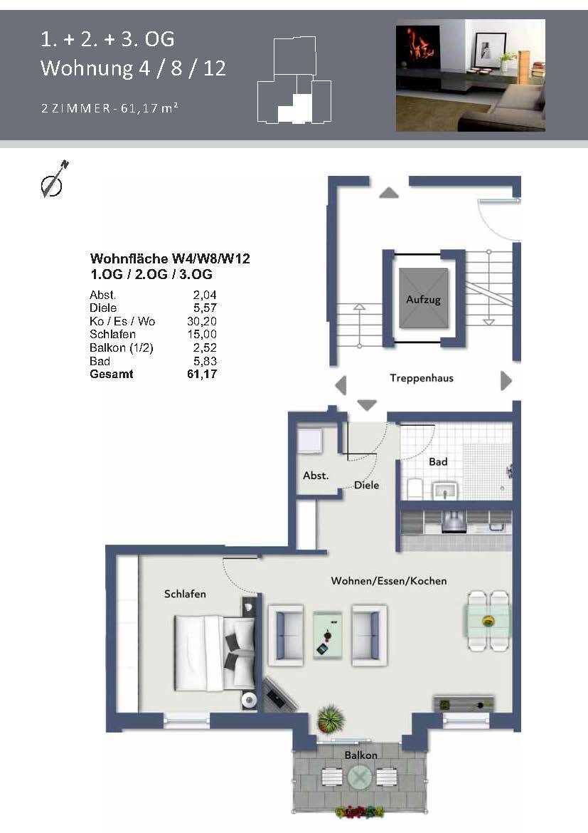 Wohnfläche:ca. 61,20 m²