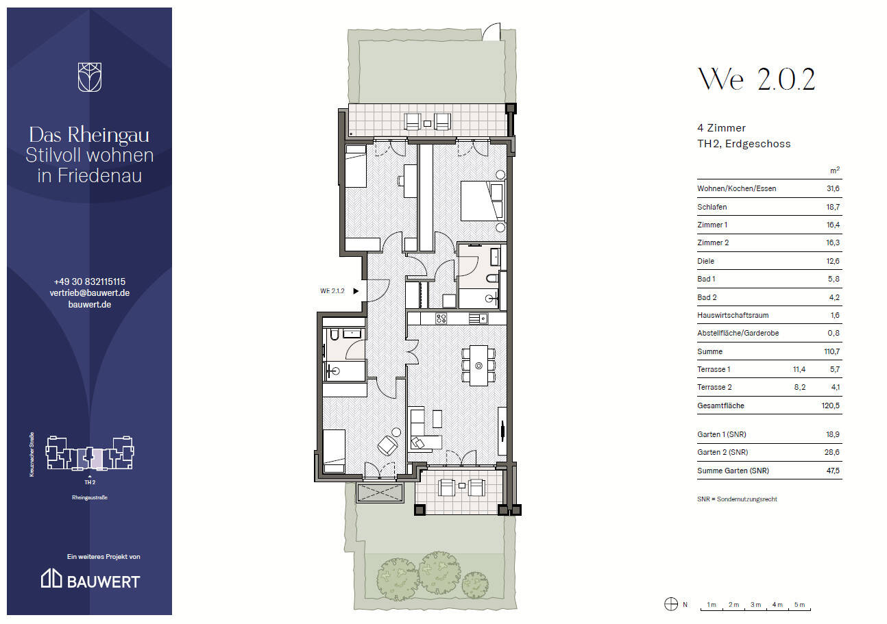 Großzügige 4-Zimmer-Gartenwohnung mit 2 Privatgärten und hochwertiger Ausstattung