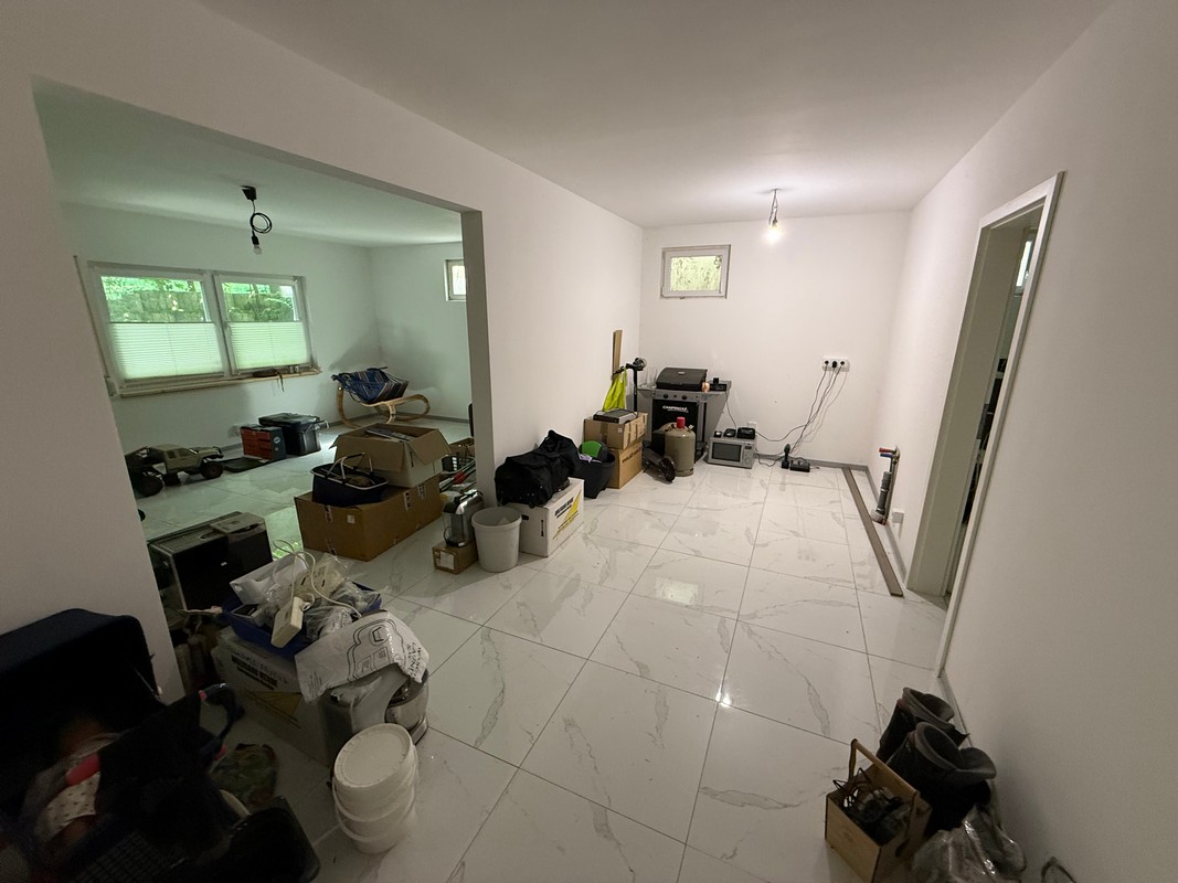 Im Untergeschoss befindet sich eine große Einliegerwohnung, bisher so gut wie unbenutzt und wie ein Erstbezug anzusehen mit separatem Eingang und barrierefreiem Zugang. 100m² Wohnfläche verteilen sich auf hier auf 2 Schlafzimmer, ein Wohnzimmer, Küche, die Sie ganz nach Ihren Vorstellungen gestalten können und einem Tageslicht-Dusch-/Wannenbad. Des Weiteren gibt es genug Nutzfläche und Abstellmöglichkeiten.