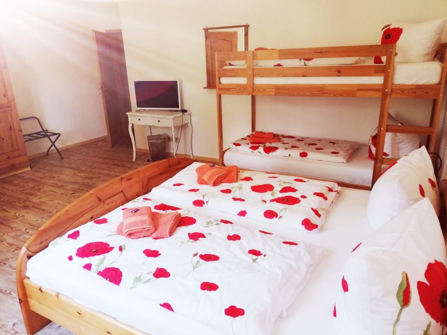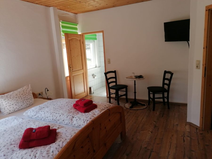 Pension (in der derzeitigen Nutzung): Die (derzeit) 13 Pensionszimmer sind von der Einrichtung her alle gleich. Nur über den jeweiligen Grundriss bedingt, teilen sich diese 13 Zimmer in ein Einzelzimmer, acht Doppelzimmer und vier Familienzimmer auf. Die Zimmer orientieren sich in ihrer Einrichtung am historischem (denkmalgeschützten) Gesamtbild des Hauses und lassen sich am treffendsten mit den Worten "rustikal & gemütlich" beschreiben (siehe Bilder). Die Zimmer sind alle laminiert und verfügen über rustikale Holzschränke und Doppelbetten mit Holzrahmen (einheitliche "Kieferoptik"). 3 der 4 Familienzimmer verfügen darüber hinaus noch über ein Doppelstockbett, das 4te Familienzimmer hat dagegen ein zweites separates Schlafzimmer mit Doppelbett. Jedes der Zimmer hat seine eigene Nasszelle (WC, Dusche, Waschbecken, Fön, Hocker, Wandregal, Duschgel-Spender, Kosmetiktücher). Alle Zimmer sind mit einer der Zimmergröße entsprechenden Sitzgruppe und mit Nachttischen und Leuchten, Lampen, Wand-Spiegel, Bettwäsche, Handtücher, LED-Sat-TV, etc. ausgestattet. WLAN ist im ganzen Hause verfügbar. Die Pension ist seit 2013 durchgängig mit dem HoGa-Zertifikat G3*** für Gasthöfe und Pensionen klassifiziert. (... derzeit gültig bis 09/2025, danach stellt diie HoGa ihr Zertifizierungssystem leider generell ein) Restaurant (in der derzeitigen Nutzung): Das Restaurant orientiert sich ebenfalls in seiner Einrichtung am historischem (denkmalgeschützten) Gesamtbild des Hauses und lässt sich auch am treffendsten mit den Worten "rustikal & gemütlich" beschreiben (siehe Bilder). Der Hauptgastraum - im Gebäudeteil (II.) - umfasst ca. 45 Plätze. Hier ist ein Kamin vorhanden. (Halboffen) angrenzend liegt der Nebengastraum - im Gebäudeteil (I.) - mit weiteren 20 Plätzen. Daneben liegt dann der Aufenthaltsraum, der entweder eben als solcher oder aber als Erweiterung des Restaurants (ca. +20 Personen via Verbindungstür) oder gut als Buffetstandort bei Feierlichkeiten dienen kann. Im Restaurantbereich gibt es selbstverständlich getrennte WCs für Damen (3 Kabinen) und für Herren (2 Kabinen & 3 Wandurinale). Im Aufenthaltsraum ist eine kleine Getränkeversorgung (Kühlschrank, Gläser und Vertrauensliste) gewährleistet. Dort sind auch diverse Brett- und Kartenspiele für die Gäste vorhanden. Das Restaurant ist komplett eingerichtet und betriebsbereit (mit 2 Finanzamt-konformen Restaurant-Kassen, dem Theken-PC / A4-Drucker mit der Hotel- und Buchungssoftware, dem Channel-Manger, etc.). Die Restaurantküche ist zweckmäßig mit allen Geräten, Mobiliar und Geschirr, der Größe des Restaurants Rechnung tragend, eingerichtet. Die ältesten Küchengeräte sind die Gastro-Spüle und der Gasherd (derzeit quasi nur als Tisch genutzt, da ja nun induktiv gekocht wird), die uns aber bisher keinen Anlass zur Erneuerung geboten haben. Alle anderen Geräte sind zwischen 1 und 8 Jahre alt. Direkt in der Küche ist ein Kühlhaus integriert. Das Hauptlager (mit einem weiteren Kühlhaus, diversen Kühltruhen, dem Trocken- und dem Getränkelager) sind dann im Keller untergebracht (direkte Treppenverbindung). Büro/Lager: - im 1. Obergeschoß des Gebäudeteiles (I.) befindet sich das Büro mit dem Haupt-PC / A3-Drucker und allen durch das Finanzamt geforderten Pflichtunterlagen - da ja je nach Personalsituation (seitens der entsprechenden Hygieneauflagen) 2 getrennte Umkleideräume mit getrennten Personal-WCs gefordert sind, ist dies hier so eingerichtet; meistens werden diese 2 Räume jedoch als Lager genutzt (für saisonale Deko, Ersatzmaterialien und das Handtuch- und Bettwäschelager) sonstiges: ... im Frühstücksraum befinden sich eine (für Pensionsgäste zugängliche) Kitchenette und ein Gästekühlschrank mit abschließbaren Einzelfächern ... via Frühstücksbuffet können Pensionsgäste jederzeit auf Tee / Kaffee (löslich) zugreifen ... der Frühstücksraum bietet Platz für ca. 40-45 Gäste und verfügt über ein permanentes Buffet, so dass hier auch schon diverse geschlossene Gesellschaften getagt haben ... neben dem Haus befindet sich eine hauseigene E-Ladestation mit 11 kW (eigener Zähler) ... ebenfalls neben dem Haus befinden sich zwei Anschlüsse zum Laden von E-Bikes (ohne Zähler: da eine E-Bike-Batterie unter 1 kWh benötigt) ... das Haus verfügt über 3 Waschmaschinen und 3 Trockner ... diverse Werkzeuge und Maschinen, eine neue Schneefräse (Bj. 2023), Rasenmäher u.v.m. sind ebenfalls im Paket "Verkaufsobjekt" enthalten