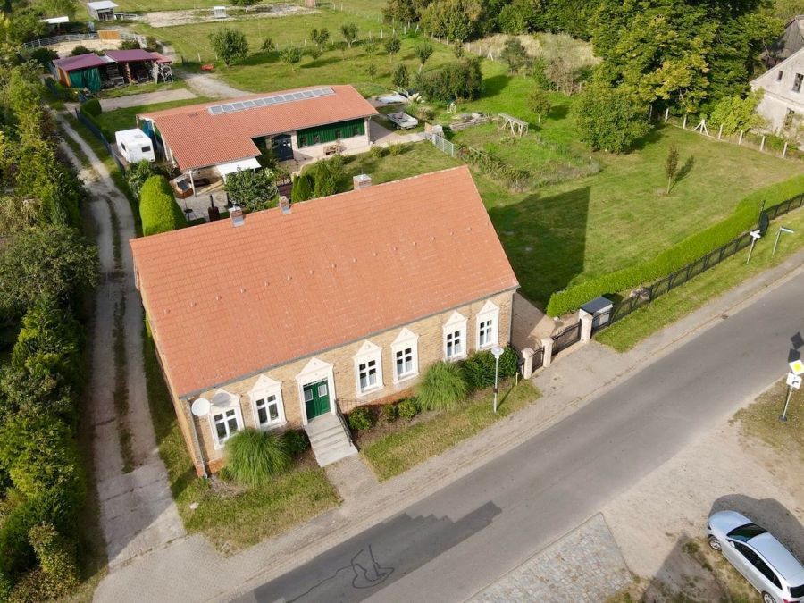 Das Wohnhaus wurde um 1910 erbaut und hat einen kleinen Kellerraum und eine Wohnfläche von ca. 136 m² im Erdgeschoss, die sich derzeit auf 4 Zimmer, Küche, 2 Bäder, Vorratskammer, HWR, Flure und einen kleinen Anbau verteilen sowie weitere mind. 100m² Ausbaureserve im Dachgeschoss. Das Dach wurde 2008 aufwendig mit Biberschwanzziegeln (Kronendeckung) neu eingedeckt und ist als Kaltdach inklusive einer Unterspannbahn ausgeführt. Die große Dachfläche mit seiner Südausrichtung bietet optimale Bedingungen für eine Photovoltaikanlage und bietet ihnen so die Möglichkeit autarke Strukturen aufzubauen. Im Dachgeschoss befindet sich ein beheizter Hobbyraum, alle weiteren Flächen sind offener Lagerraum. Die obere Geschossdecke wurde gedämmt. Die Fassade des Hauses ist als Klinkerfassade zweischalig hergestellt und besteht aus einem tragenden Mauerwerk im Inneren, auf das ein Luftspalt folgt sowie einem Vormauerwerk (die Klinkerfassade). In den letzten Jahren wurden umfangreiche Renovierungsarbeiten am und im Gebäude durchgeführt. Die Dielenböden in den beiden Wohnzimmern und im Gästezimmer wurden aufgearbeitet und neu versiegelt. In allen anderen Räumen und Fluren wurden die Fußböden gedämmt und gefliest. Die Bäder sind hochwertig modernisiert, Wandheizkörper erneuert, eine neue Haustür ist eingesetzt und ein Kamin für gemütliche Abende wurde verbaut. Ebenfalls erneuert wurden die Zimmertüren. Aufwändige Stuckarbeiten in den Wohnzimmern verleihen den Räumen eine individuelle und exklusive Optik. Passend zum Stil ist der Flur mit weißen Kassettenpaneelen verkleidet. Die charmante weiße Landhausküche von Nobilia wartet mit Markengeräten der Firma Siemens auf. Der neue Anbau wurde gedämmt und mit Riemchen verblendet. Die Fenster sind Doppelkastenfenster mit Holzrahmung in weiß lackiert. Im Dachgeschoss wurden bereits energetische Fenster mit Holzrahmen vom örtlichen Tischler verbaut. In 2023 wurde eine neue Gastherme eingebaut und in Betrieb genommen. Das Stallgebäude misst ca. 18mx10 (ca. 180 m²). Es wurde 2012 in Holzständerbauweise errichtet und aufwändig mit den Mauersteinen des früheren Stallgebäudes verkleidet. Die große Dachfläche mit seiner Südausrichtung bietet wie das Wohnhaus optimale Bedingungen für einen weiteren Ausbau einer Photovoltaikanlage. Die 3 großen Pferdeboxen sind mit schwenkbaren Trennwänden ausgestattet, so dass man statt einzelner Boxen auch einen großen Laufstall einrichten kann. Zu jeder Box gehört ein gepflasterter überdachter Außenpaddock. Zwei Boxen sind mit den grünen EVA-Boxenmatten ausgelegt, sodass die Pferde nicht auf dem Betonboden stehen müssen. Ansonsten gibt es eine Futter- und Sattelkammer, eine Toilette, Werkstattbereich, Heulagerraum und einen Abstellraum für den Kleintraktor. Das Regenwasser vom Dach wird in einer unterirdischen 6000 l Zisterne aufgefangen und steht zusätzlich zu einem vorhandenen Brunnen zur Wasserversorgung der Tiere zur Verfügung. | |