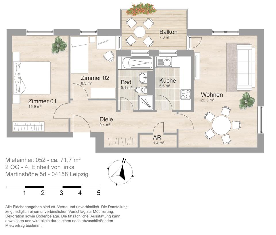 Sie befinden sich hier: Attraktive Wohnung mit Balkon, Tageslichtbad und Abstellraum in Leipzig Nord - 3172336115-203-30123 | 1A-Immobilienmarkt.de