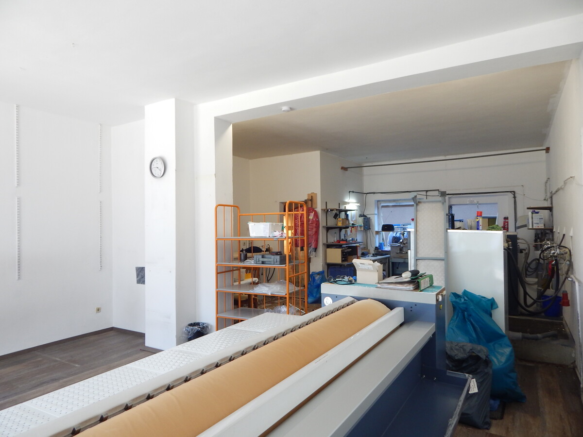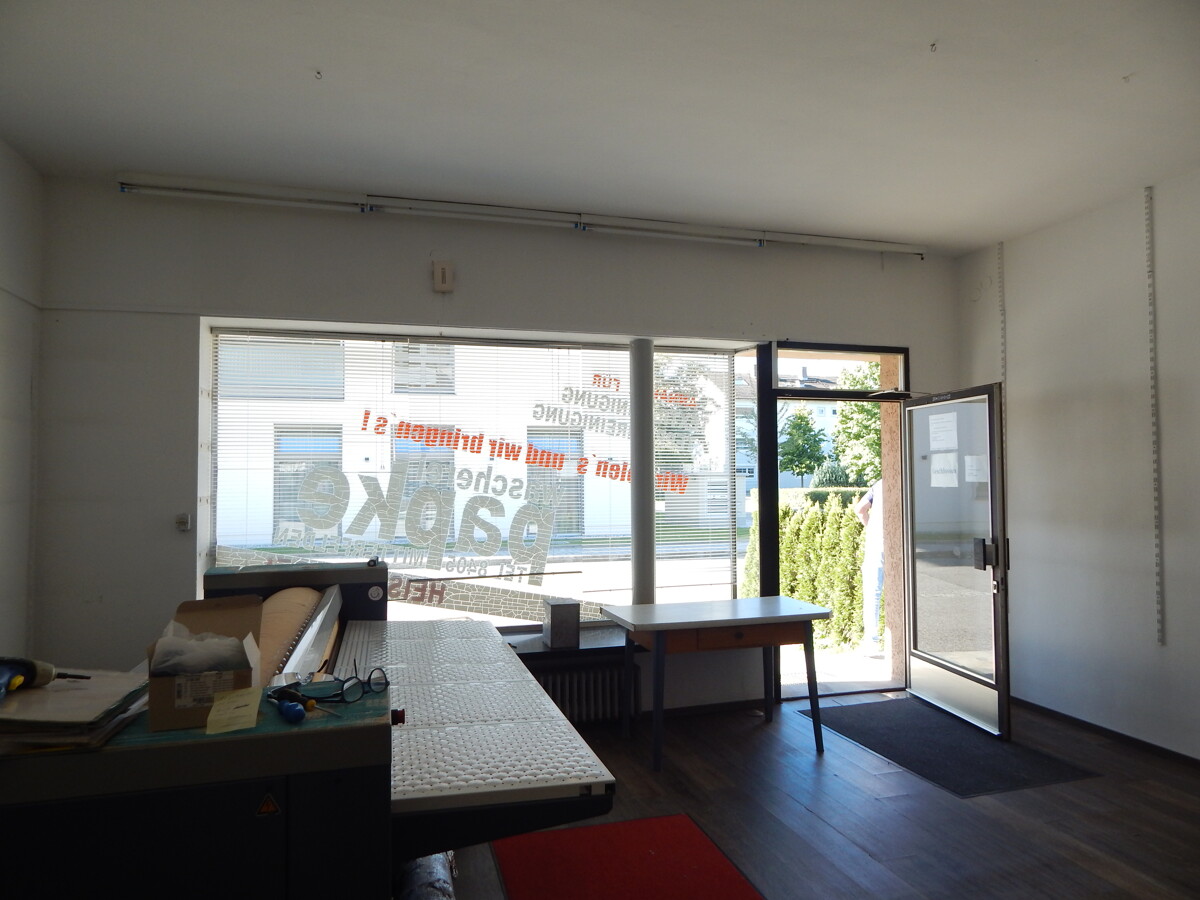 Der helle, offen gestaltete Verkaufsraum überzeugt durch ein großes Schaufenster zur Straßenseite, das nicht nur viel Tageslicht in die Fläche bringt, sondern auch optimale Möglichkeiten zur Warenpräsentation und Außenwirkung bietet.
